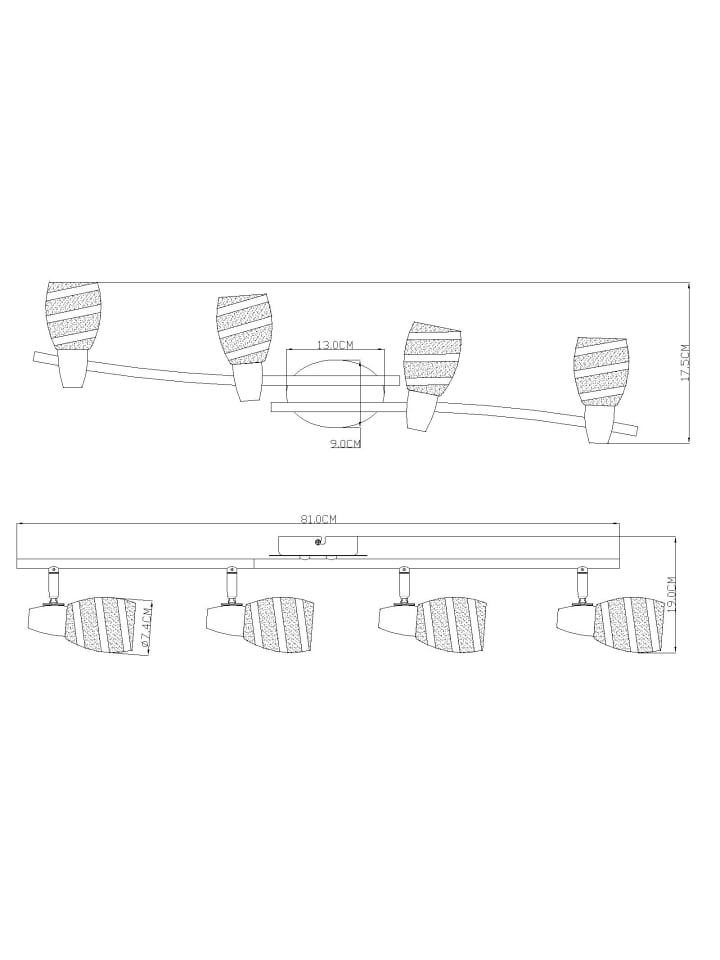 Прожектор, хромированный металл, матовое стекло, ДхШхВ: 810х90х190 мм, без учета 4 ламп E14 40 Вт 230 В.