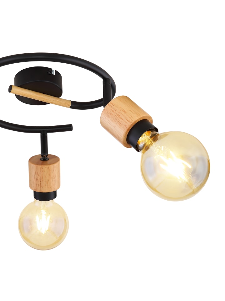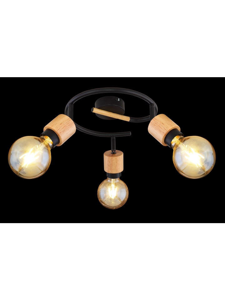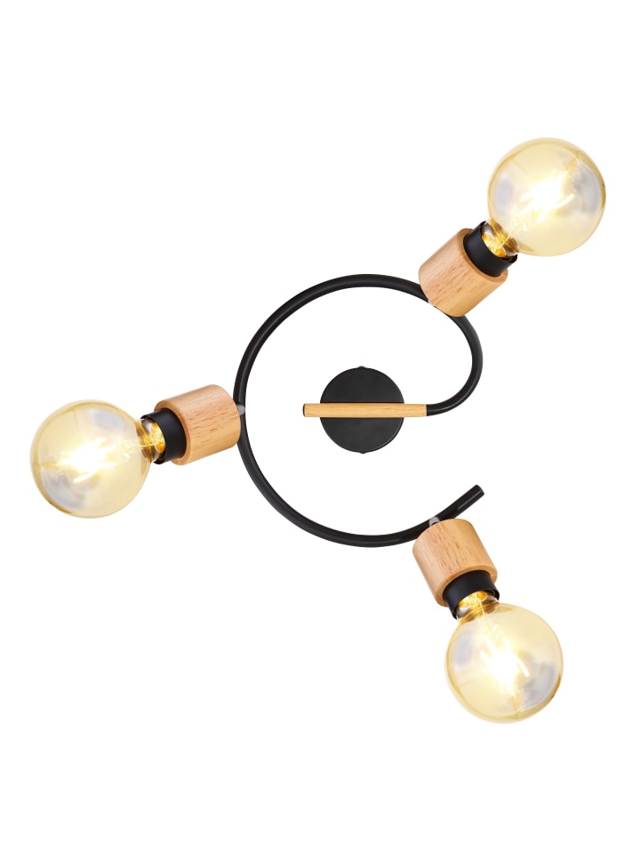 Прожектор, металл, матовый черный; дерево, светлое; ø: 250 мм, H: 163 мм; лампочки в комплект не входят: 3x E27 40 Вт 230 В