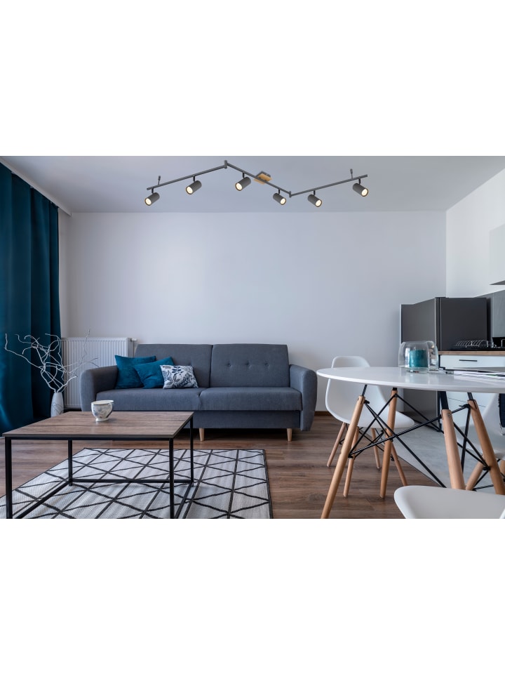 Металлический графитовый прожектор, имитация дерева, металлический графит, регулируемый, ДхШхВ: 1800x100x185 мм, без 6 ламп GU10 35 Вт 230 В.