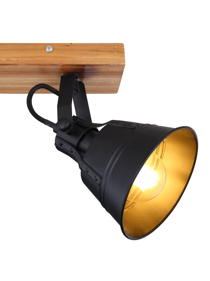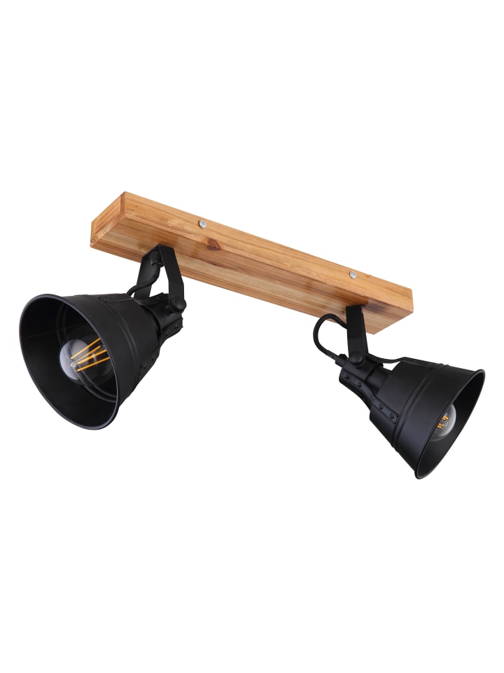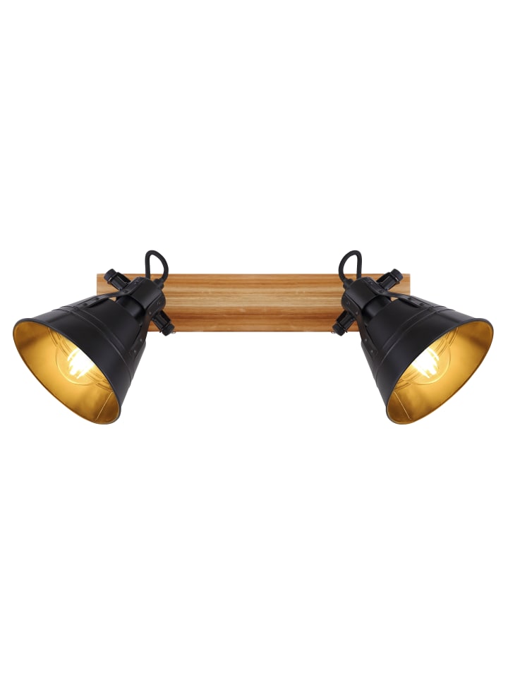 Прожектор, коричневый цвет дерева с золотистой патиной, матовый черный металл, имитация дуба, ДхВ: 380х240 мм, без учета 2 ламп E27 60 Вт 230 В