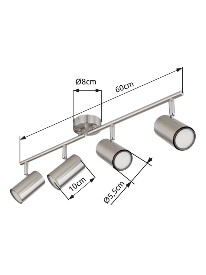 Прожектор, металл, матовый никель, хром, металл, матовый никель, поворотный/вращающийся, ДхШхВ: 600х80х145 мм, без учета 4 ламп GU10 25 Вт 230 В