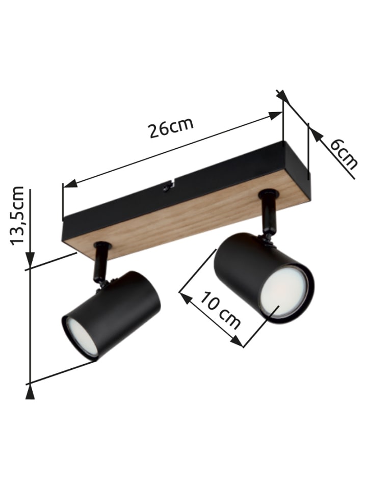 Прожектор, матовый черный металл, МДФ с отделкой под темное дерево, матовый черный металл, ДхШхВ: 260х60х135 мм, без учета 2 ламп GU10 35 Вт 230 В.