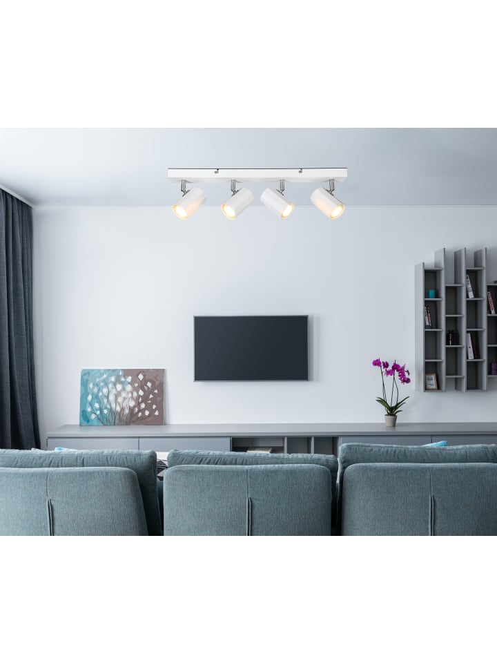 Прожектор, металл, матовый белый; алюминий, матовый белый; размеры (Д x Ш x В): 530 x 60 x 145 мм; лампочки в комплект не входят: 4 x GU10 25 Вт 230 В