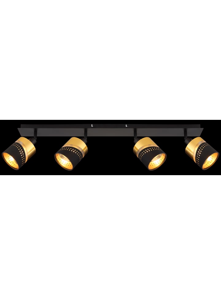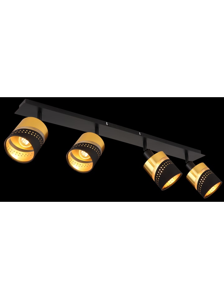 Прожектор, металл, матовый черный; ткань, черный; пластик, золотистый; Д x Ш x В: 800 x 90 x 205 мм; лампочки в комплект не входят: 4 x E14 25 Вт 230 В