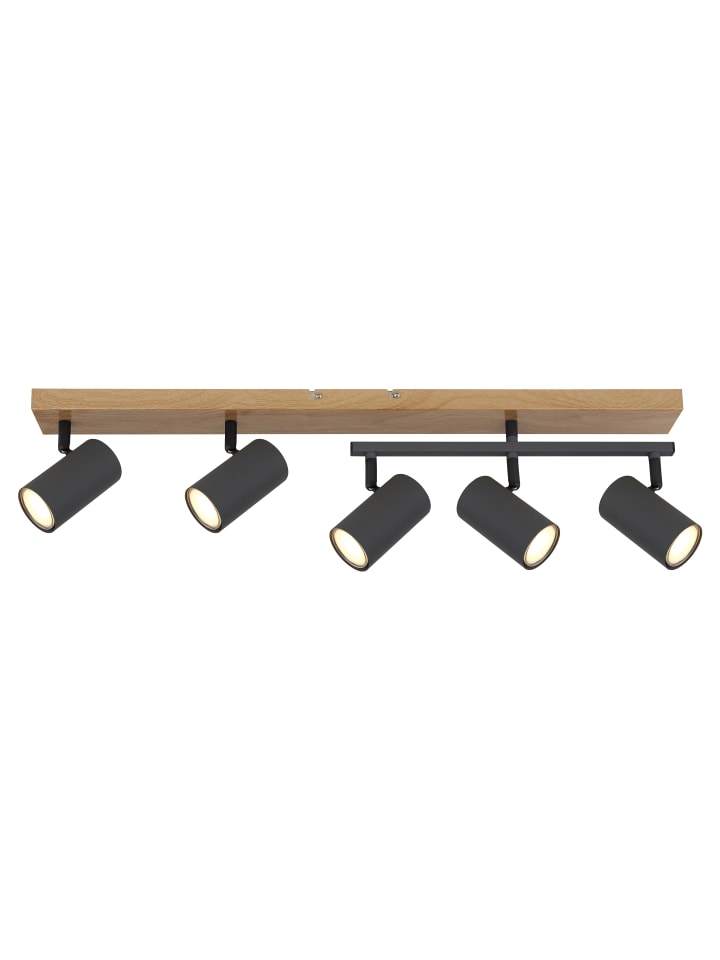 Прожектор, имитация металла и дерева, матовый, графитовый металл, черный, поворотный/вращающийся, ДхШхВ: 700x350x170 мм, без учета 5 ламп GU10 35 Вт 230 В.