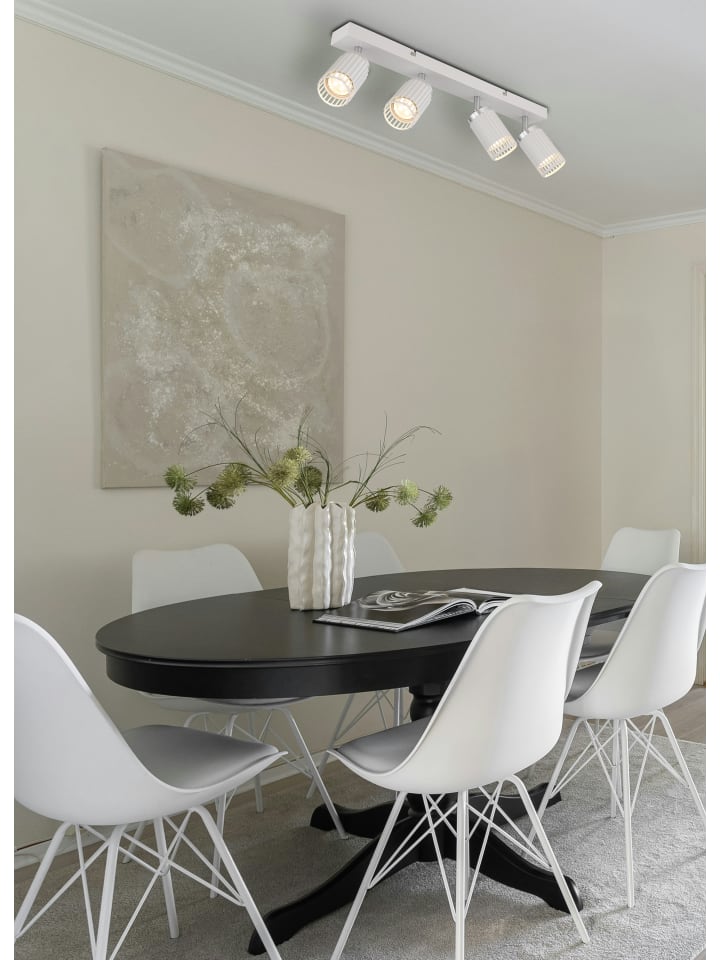 Прожектор, металл, матовый белый; алюминий, матовый белый; алюминий, хромированный; Д x Ш x В: 530 x 125 x 155 мм; 4 лампы GU10 25 Вт 230 В в комплект не входят.
