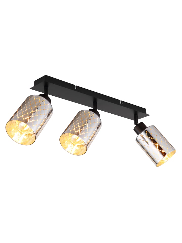 Прожектор, матовый черный металл, хромированное стекло, прозрачные декоративные вырезы, поворотный/вращающийся, ДхШхВ: 660х90х220 мм, без учета 3 ламп E27 40 Вт 230 В.