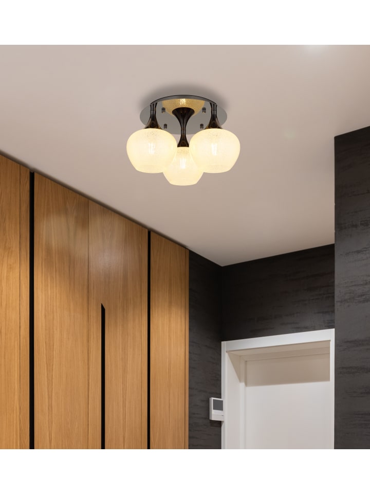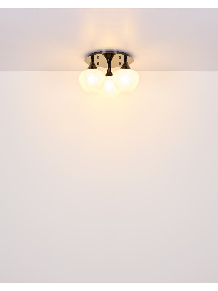 Потолочный светильник, металл, черный и хромированный, прозрачное стекло, прозрачные акриловые кристаллы, диаметр: 450 мм, высота: 275 мм, без учета 3 ламп E27 40 Вт 230 В.