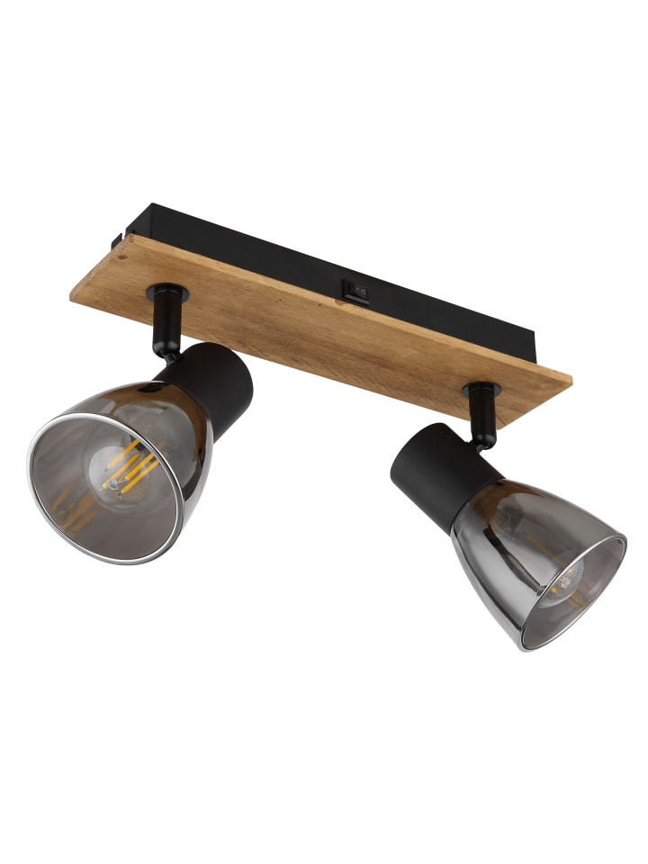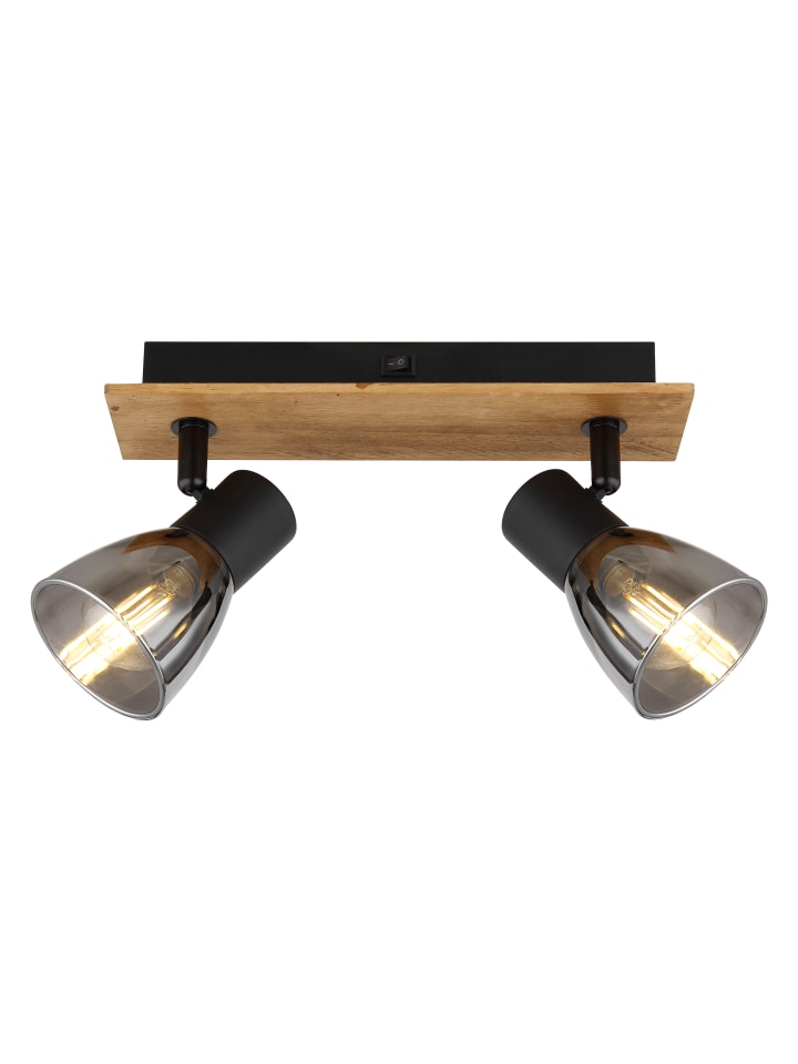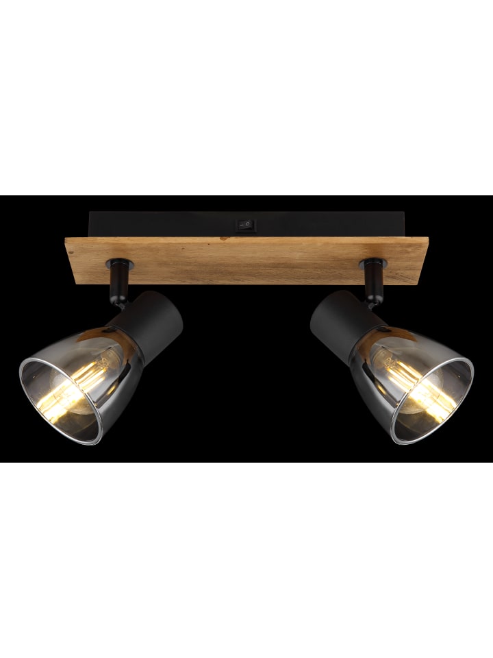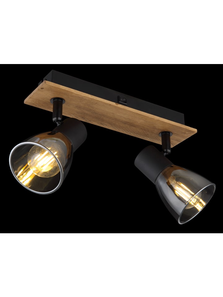 Прожектор, темно-коричневое дерево, матовый черный металл, тонированное стекло, тумблерный переключатель на изделии, ДхШхВ: 250х70х155 мм, без учета 2 ламп E14 40 Вт 230 В.