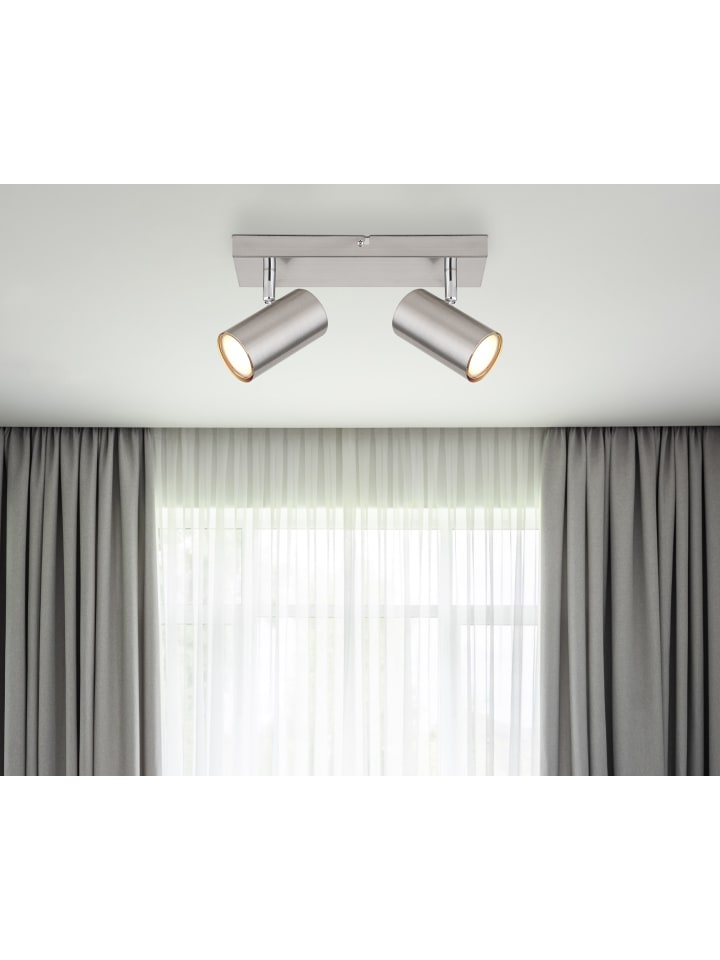 Прожектор, металл, матовое никелированное покрытие, металл, матовое никелированное покрытие, хромированное покрытие, ДхШхВ: 260х60х120 мм, без учета 2 ламп GU10 35 Вт 230 В.