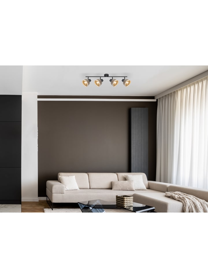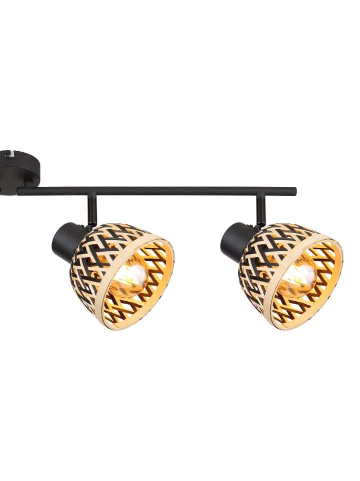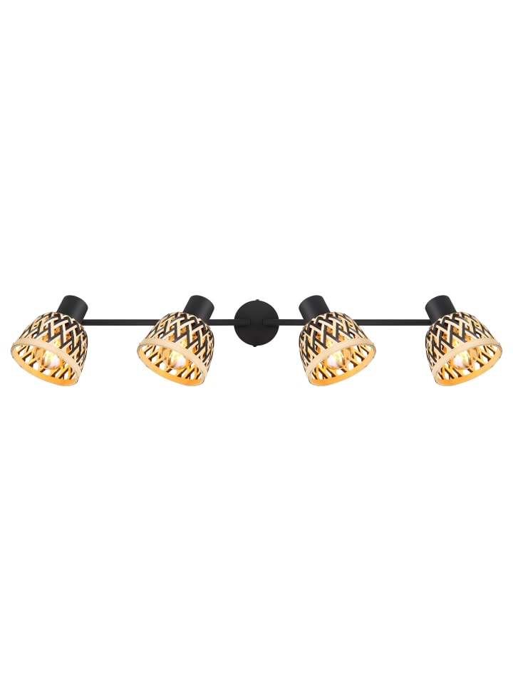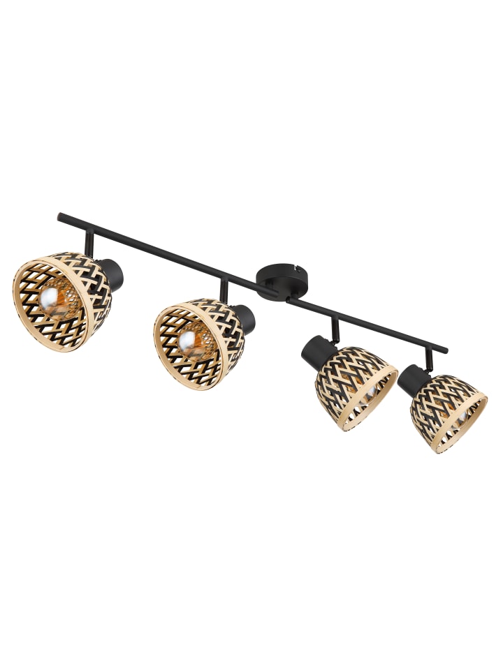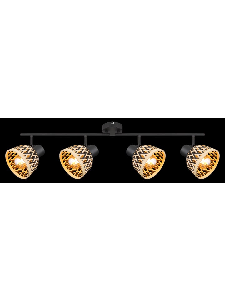 Прожектор, металл, матовый черный, бамбук, натуральный цвет, черный, регулируемый, поворотный/вращающийся, ДхШхВ: 800x130x190 мм, без учета 4 светодиодных ламп E27 15 Вт 230 В