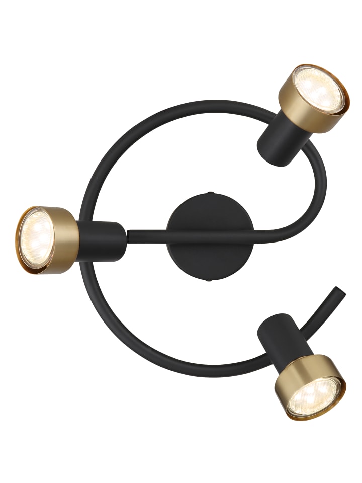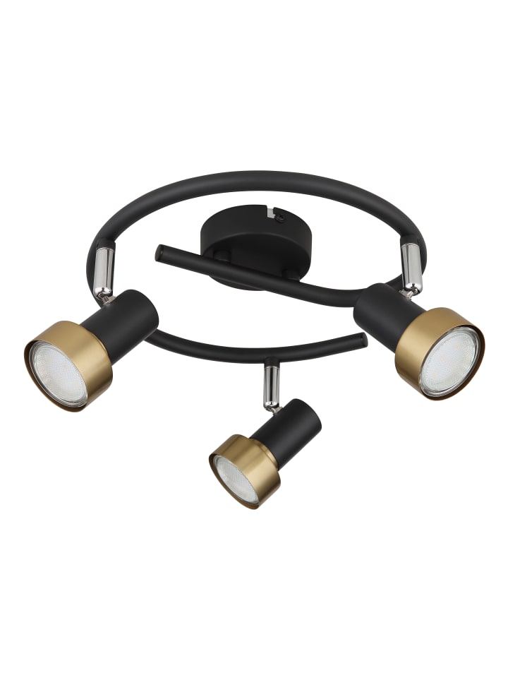 Прожектор из матового черного металла, хромированного металла, матового черного металла, металла цвета античного золота, диаметр: 250 мм, высота: 133 мм, без 3 ламп GU10 25 Вт 230 В.