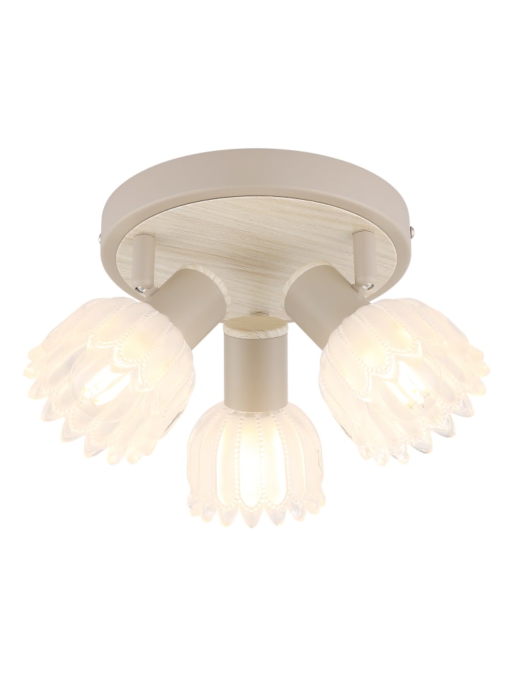 Прожектор, металл, матовая отделка песочного цвета; металл, имитация светлого дерева; матовое стекло; поворотный/вращающийся; ø: 340 мм, H: 125 мм; лампочки в комплект не входят: 3x E14 40 Вт 230 В