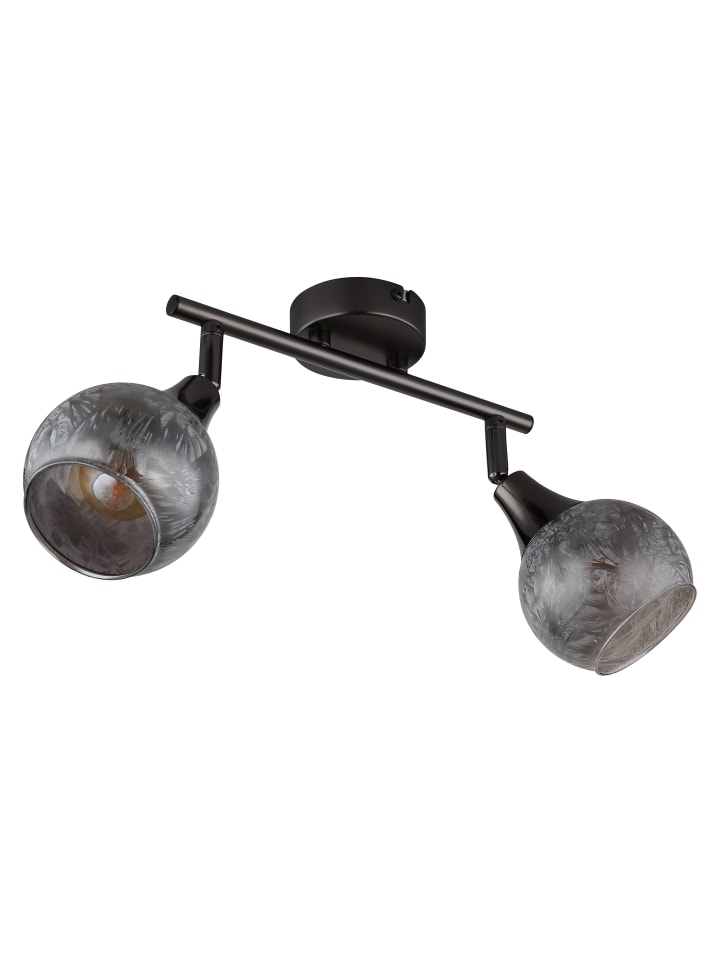 Прожектор, металл, матовое черное хромированное покрытие, металл, черное хромированное покрытие, матовое дымчатое стекло, поворотный/вращающийся, ДхШхВ: 250х98х190 мм, без учета 2 лампочек E14 40 Вт 230 В.
