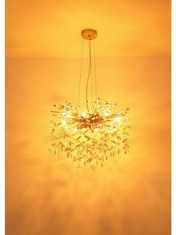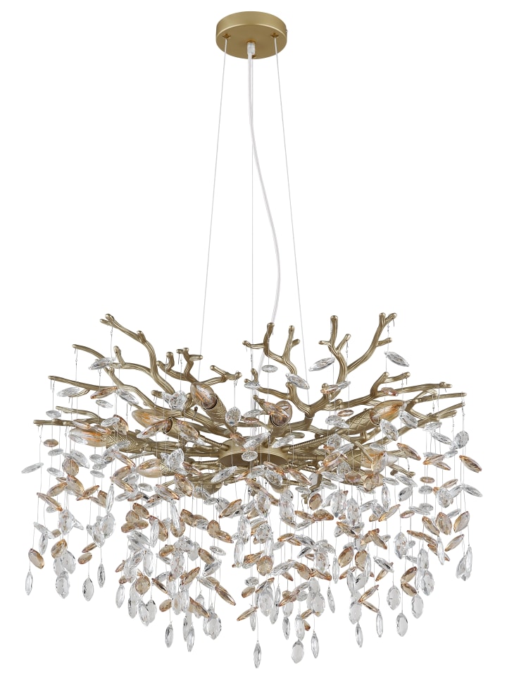 Металлическая люстра, матовое золото, янтарные и прозрачные стеклянные хрустальные элементы, регулируемая высота, гибкие патроны, диаметр: 800 мм, высота: 1200 мм, в комплект не входят 10 лампочек E14 40 Вт 230 В.