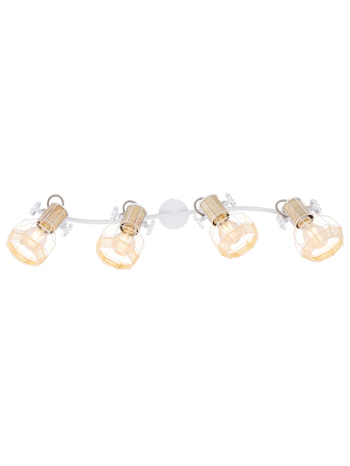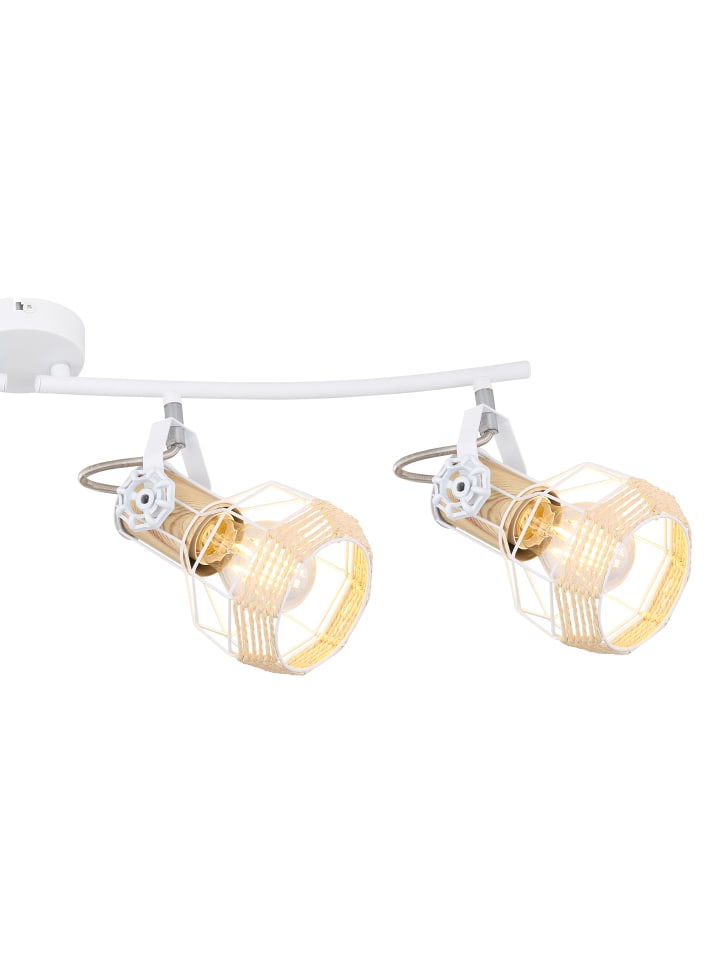 Прожектор, металл, белый; металл, имитация светлого дерева; металл, белый; регулируемый; абажуры из натуральной рафии; колесико регулировки на кронштейне; Д x Ш x В: 720 x 320 x 200 мм; без учета 4 лампочек E27 40 Вт 230 В