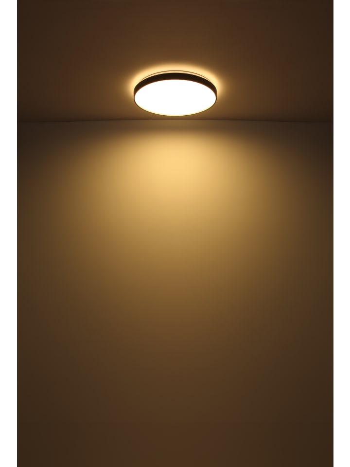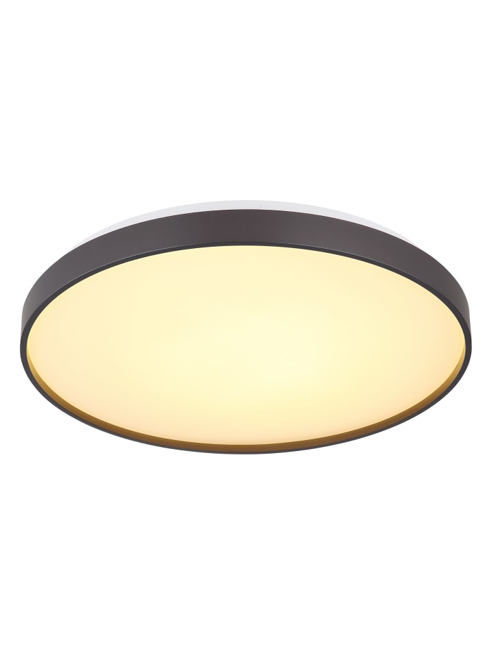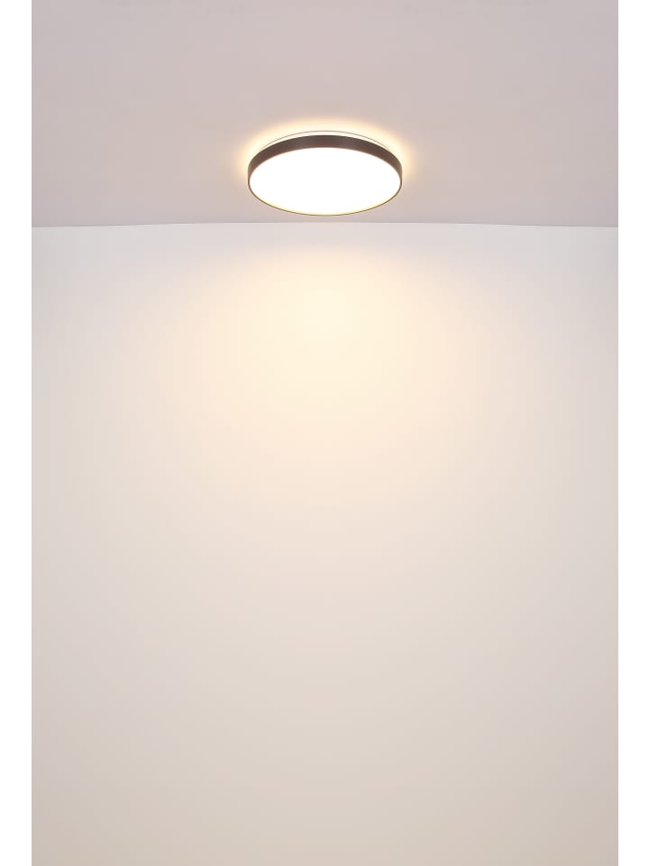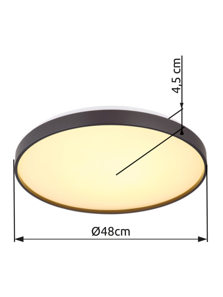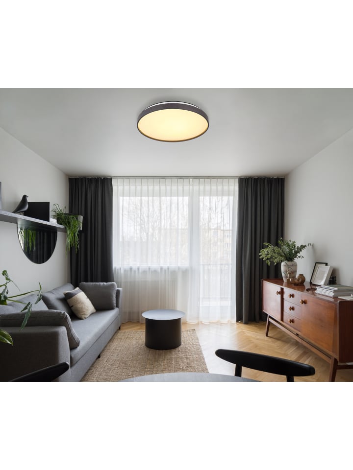 Потолочный светильник, белый металлик, опаловый акрил, матовый пластик антрацитового цвета, диаметр: 480 мм, высота: 45 мм, в комплекте светодиод 24 Вт, 230 В, источник света 2500 лм, световой поток 1400 лм, цветовая температура 3000K.