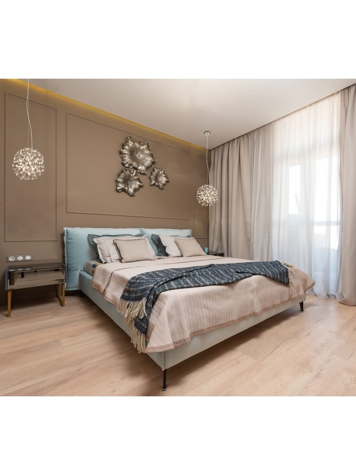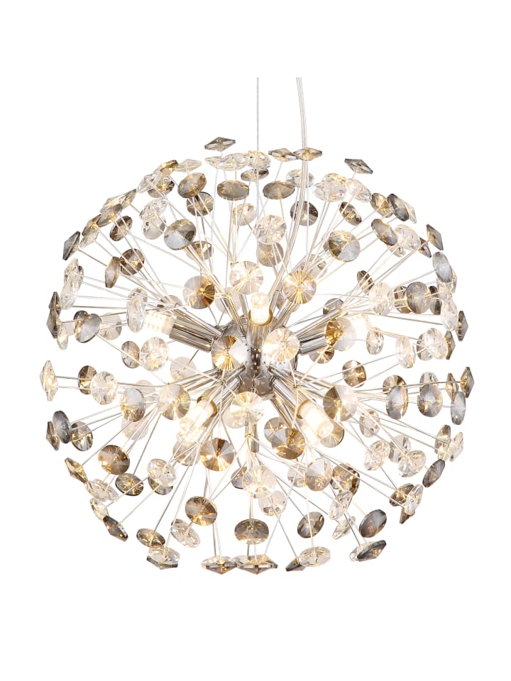 Хромированная металлическая люстра, хрустальные подвески K9 дымчатого цвета, прозрачный ПВХ-кабель, регулируемая высота, диаметр: 400 мм, высота: 1500 мм, в комплекте 8 светодиодных ламп G9 3,5 Вт 230 В, световой поток 350 лм, цветовая температура 3000K, светодиодные лампы 10676