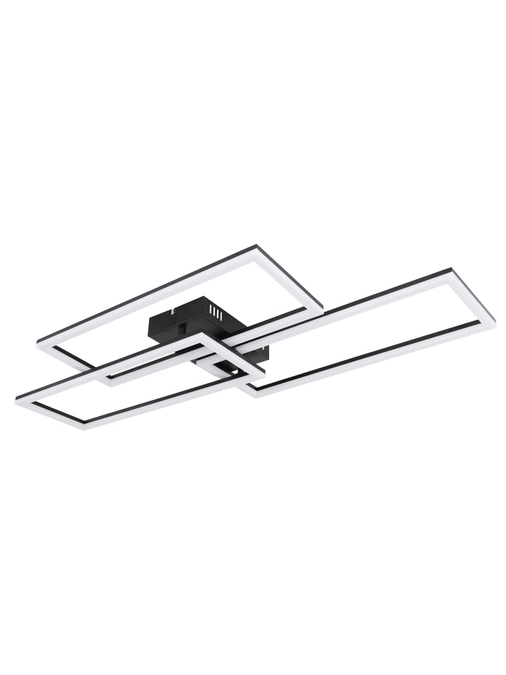 Потолочный светильник, матовый черный металл, опалово-белый пластик, регулировка яркости, несколько уровней яркости с помощью настенного выключателя, блокировка цвета, функция памяти, ночник, пульт дистанционного управления, батарейки в комплекте (2 x AAA), размеры (Д x Ш x В): 900 x 400 x 80 мм, включает светодиод 58 Вт 230 В, источник света 400-5500 лм, световой поток 300-4300 лм, цветовая температура 3000-6500K
