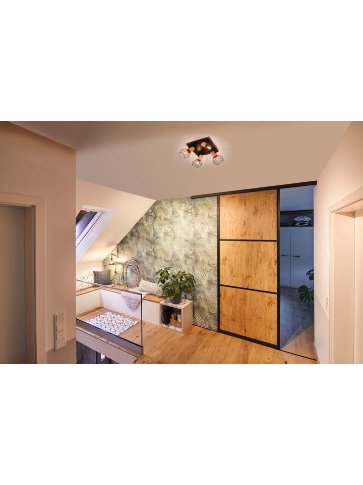 Благодаря современному сочетанию черного цвета и дерева, четырехламповый потолочный светильник Lanka станет настоящим украшением в скандинавском стиле. Светильник обеспечит уютное освещение в любой комнате. Лампочки приобретаются отдельно. Можно использовать любые лампы накаливания с цоколем E14 и максимальной мощностью 20 Вт.