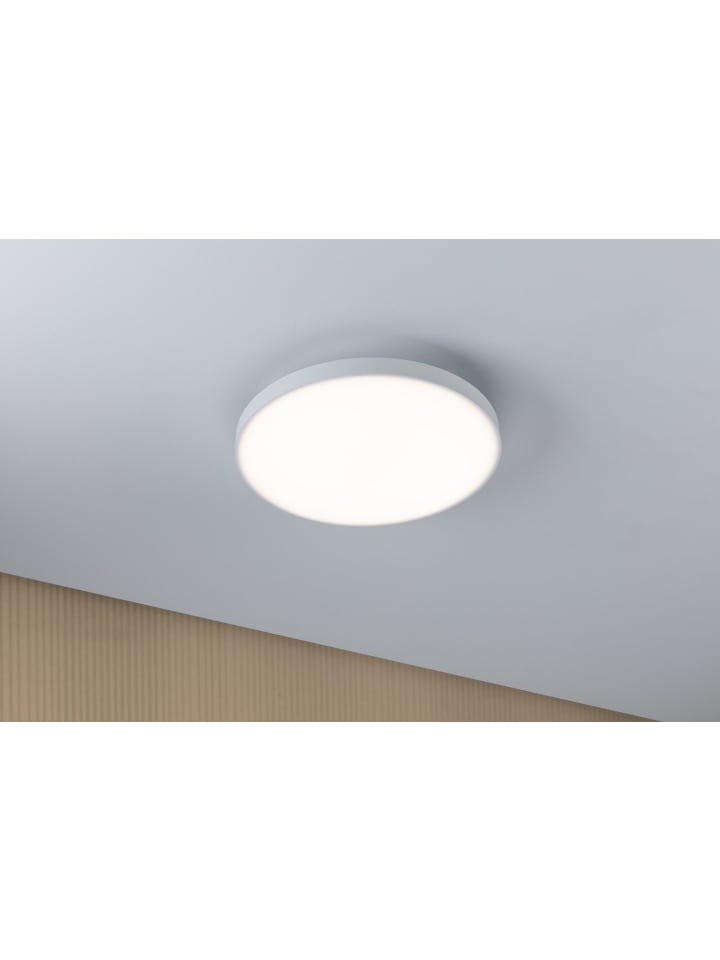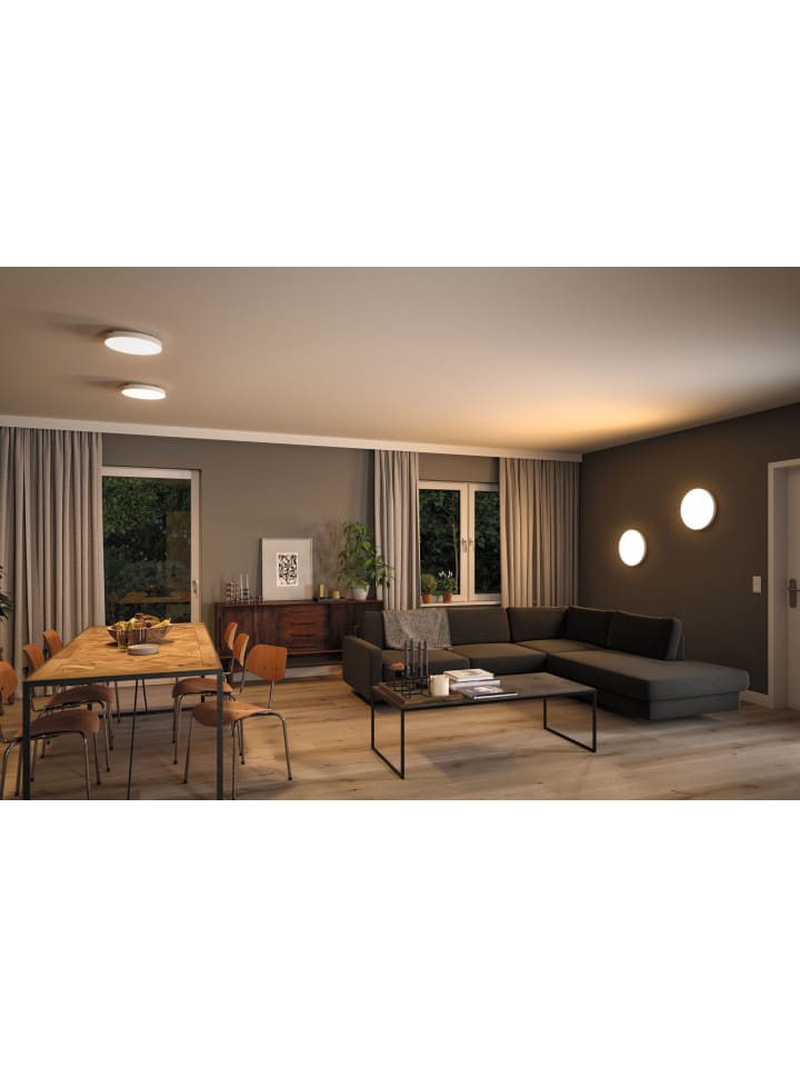 Безрамочная накладная панель Velora может быть установлена как на потолке, так и на стенах. Ее ультраплоская конструкция позволяет круглой панели диаметром 300 мм органично вписываться в стену и потолок. Матовая поверхность рассеивающей пластины обеспечивает приятное рассеянное освещение. Благодаря прочной металлической подложке установка особенно проста, и панель кажется парящей в воздухе.