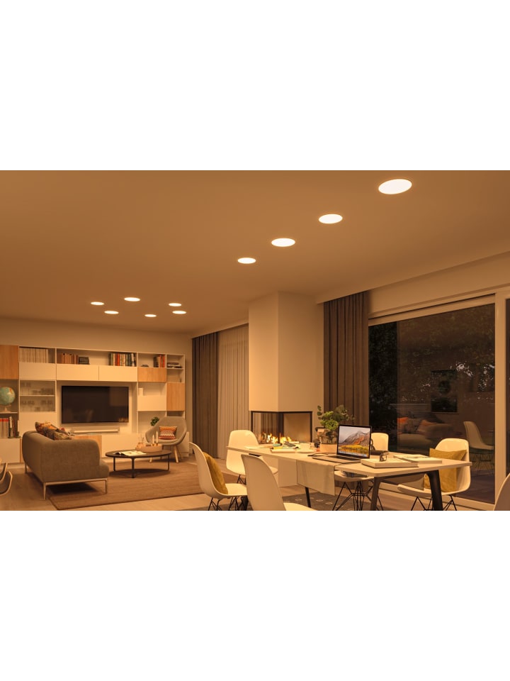 Безрамочная панель Veluna мощностью 8,5 Вт обеспечивает рассеянный теплый белый свет. Благодаря гибкой технологии VariFit, пружины крепления можно плавно регулировать в диапазоне от 45 до 100 мм. Это позволяет устанавливать панель как в существующие, так и в новые отверстия с помощью стандартного корончатого сверла. Для отверстия диаметром 90 мм требуется глубина полости 30 мм, а для диаметра 68 мм - 45 мм. - Гарантия соответствия! - VariFit - гибкая установка с плавно регулируемыми пружинными зажимами - Со встроенным светодиодным источником света - Цветовая температура: 3000K - Теплый белый - Равномерное освещение помещения благодаря современной светодиодной технологии - Для прямого подключения к сети 230 В - Изделие не диммируется - Цвет: Матовый - Материал: Пластик - Круглый - 230 В - LED - Высота: 10/31 см