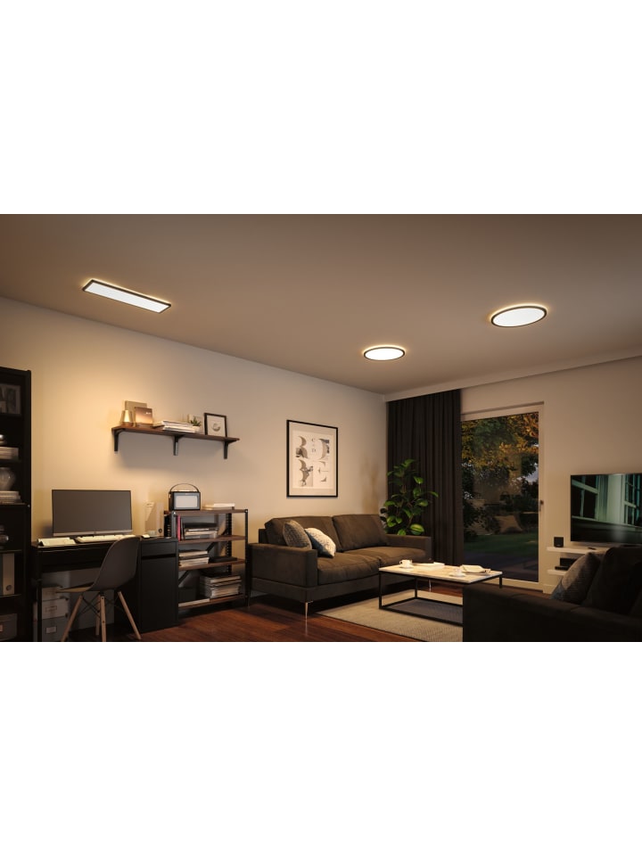 Благодаря выходной мощности 22 Вт, прямоугольная светодиодная панель Atria Shine черного цвета размером 580x200 мм идеально подходит для общего освещения в гостиных, спальнях или кухнях. Теплый белый свет панели создает равномерное и рассеянное освещение. Встроенная функция 3-ступенчатой регулировки яркости позволяет уменьшать яркость в три этапа многократным нажатием стандартного выключателя света. Дополнительная технология подсветки создает особую атмосферу и придает панели почти «парящий» вид. Благодаря быстросъемному зажиму и специальному поворотному замку, панель с ультраплоским профилем всего 28 мм очень проста в установке. - Ультраплоская накладная панель с подсветкой - Технология подсветки для еще более незаметного, почти парящего эффекта освещения - Ультраплоский дизайн: профиль всего 28 мм - Равномерное освещение помещения на основе современной светодиодной технологии - Цветовая температура: 3000K - Теплый белый - Может крепиться на стену или потолок - Особенно плоский дизайн - Изделие с возможностью диммирования - Цвет: Черный - Материал: Пластик - Прямоугольная форма - 230 В - LED - Размеры: В: 28 x Ш: 580 x Г: 200 см