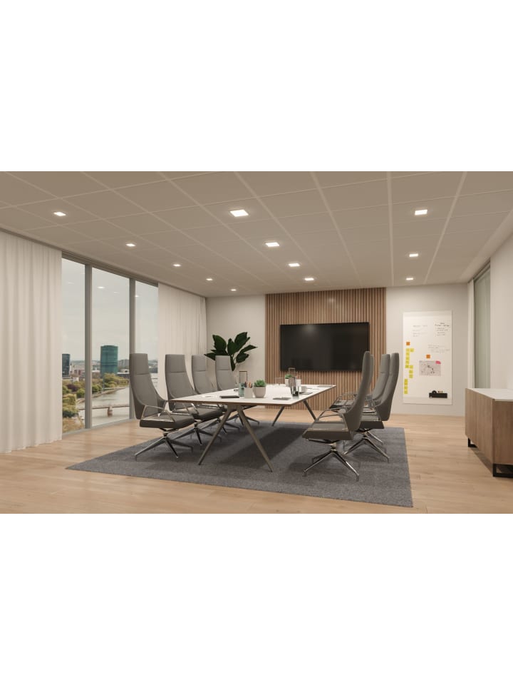 Прямоугольная встраиваемая панель Veluna VariFit Edge впечатляет своим современным безрамочным дизайном в сдержанном белом цвете. Диаметр 90 мм и цветовая температура 3000K обеспечивают высокую и равномерную светоотдачу. Благодаря гибкой технологии VariFit, пружины крепления можно плавно регулировать в диапазоне от 50 до 70 мм. Это позволяет устанавливать панель как в существующие, так и в новые отверстия. Для отверстия диаметром 50 мм требуется глубина полости 35 мм. Пластиковый корпус с сатинированной отделкой создает тонкое рассеивание света и приятный теплый белый свет.