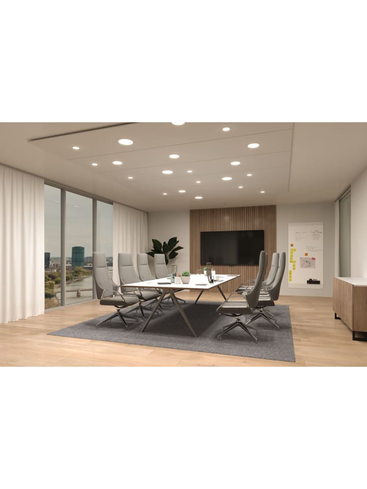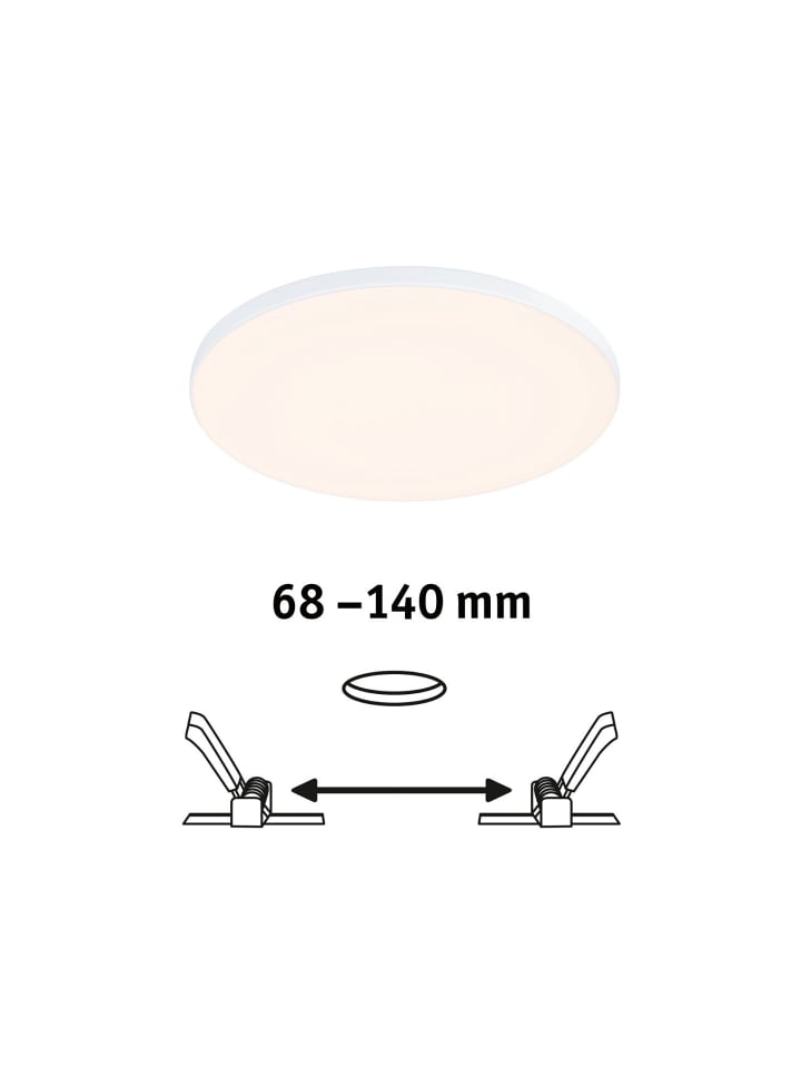 Круглая встраиваемая панель Veluna VariFit Edge впечатляет своим современным безрамочным дизайном в нежном белом цвете. Благодаря диаметру 90 мм и цветовой температуре 3000K панель обеспечивает высокую и равномерную светоотдачу. Благодаря гибкой технологии VariFit, пружины крепления можно плавно регулировать в диапазоне от 50 до 70 мм. Это позволяет устанавливать панель как в существующие, так и в новые отверстия. Для отверстия диаметром 50 мм требуется глубина полости 35 мм. Пластиковый корпус с сатинированной отделкой создает тонкое рассеивание света и приятный теплый белый свет.