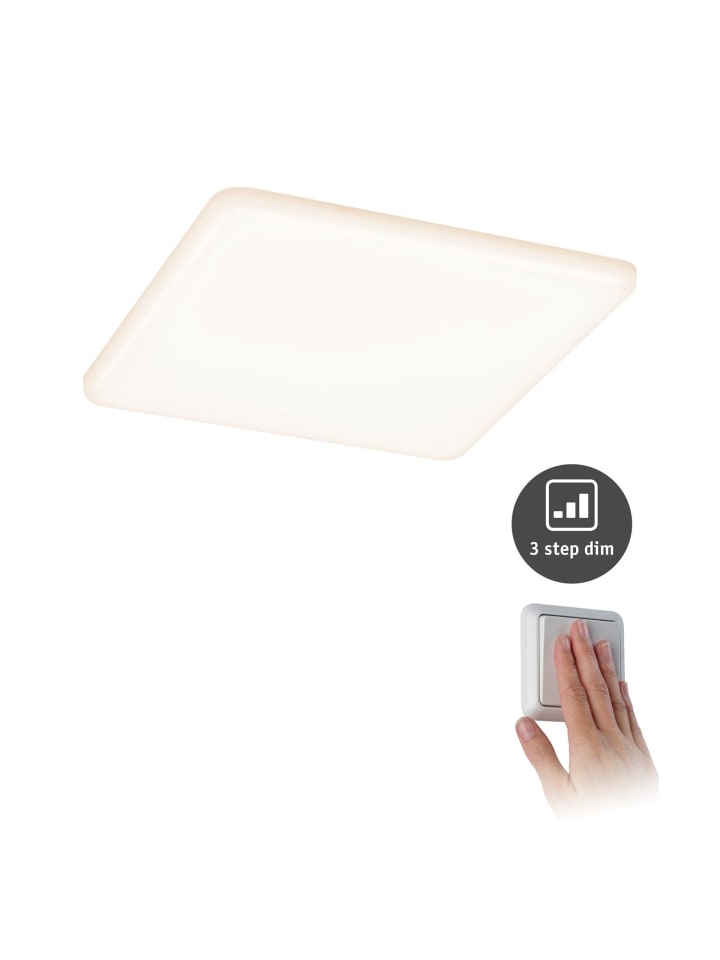 Встраиваемая светодиодная панель VariFit Veluna с 3-ступенчатым диммированием, степень защиты IP44, прямоугольная, 185x185 мм, 17 Вт, 1400 лм, 3000K, матовая поверхность, регулировка яркости.
