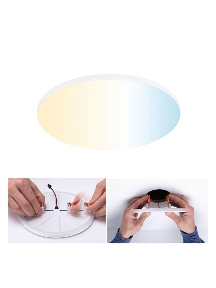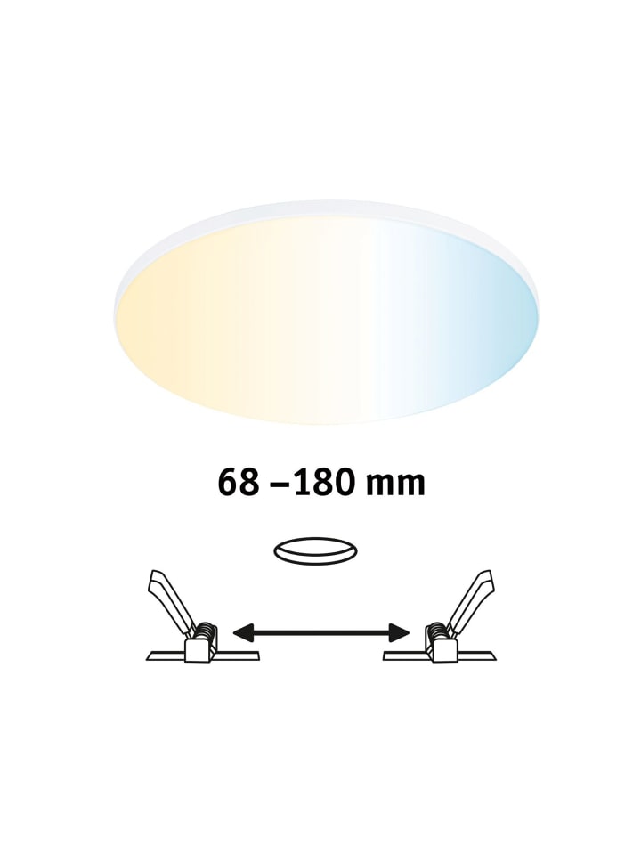 Круглая встраиваемая панель Veluna VariFit Edge впечатляет своим современным безрамочным дизайном. Панель диаметром 200 мм обеспечивает высокую и равномерную светоотдачу. Благодаря гибкой технологии VariFit, пружины крепления можно плавно регулировать в диапазоне от 68 до 180 мм. Это позволяет устанавливать панель как в существующие, так и в новые отверстия. Для отверстия диаметром 68 мм требуется глубина полости 30 мм. Пластиковая крышка с сатинированной отделкой создает тонкое рассеивание света. С помощью регулятора Tunable White цвет света светильника можно индивидуально и плавно регулировать - от дневного белого света для работы до теплого белого света для релаксации, возможно все. Светильник совместим с Zigbee 3.0. Zigbee 3.0 - это беспроводной протокол связи, который соединяет устройства разных производителей. Характеристики: - Сверхплоский дизайн - Регулируемый белый свет от теплого белого до дневного белого - Равномерное освещение помещения благодаря современной светодиодной технологии - Высокая светоотдача при рассеянном свете - Степень защиты IP44 от брызг для ванных комнат и подобных помещений - Пластиковый корпус с сатинированной отделкой для тонкого рассеивания света - VariFit - гибкая установка с плавно регулируемыми пружинными зажимами - Встроенный светодиодный источник света - Срок службы 50 000 часов - Регулировка яркости - Цвет: белый - Материал: пластик - Круглый - 230 В - LED - Высота: 9 см