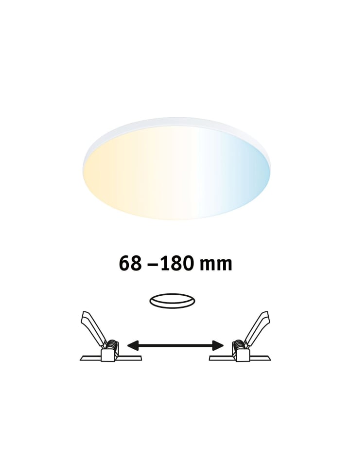 Круглая встраиваемая панель Veluna VariFit Edge впечатляет своим современным безрамочным дизайном. Панель диаметром 160 мм обеспечивает высокую и равномерную светоотдачу. Благодаря гибкой технологии VariFit, пружины крепления можно плавно регулировать в диапазоне от 68 до 140 мм. Это позволяет устанавливать панель как в существующие, так и в новые отверстия. Для отверстия диаметром 68 мм требуется глубина полости 100 мм. Пластиковая крышка с сатинированной отделкой создает тонкое рассеивание света. С помощью регулятора Tunable White цвет света светильника можно индивидуально и плавно регулировать - от дневного белого света для работы до теплого белого света для релаксации, возможно все. Светильник совместим с Zigbee 3.0. Zigbee 3.0 - это беспроводной протокол связи, который соединяет устройства разных производителей. Характеристики: - Сверхплоский дизайн - Регулируемый белый свет от теплого белого до дневного белого - Равномерное освещение помещения благодаря современной светодиодной технологии - Высокая светоотдача при рассеянном свете - Степень защиты IP44 от брызг для ванных комнат и подобных помещений - Пластиковый корпус с сатинированной отделкой для тонкого рассеивания света - VariFit - гибкая установка с плавно регулируемыми пружинными зажимами - Встроенный светодиодный источник света - Срок службы 50 000 часов - Регулировка яркости - Цвет: белый - Материал: пластик - Круглый - 230 В - LED - Высота: 9 см