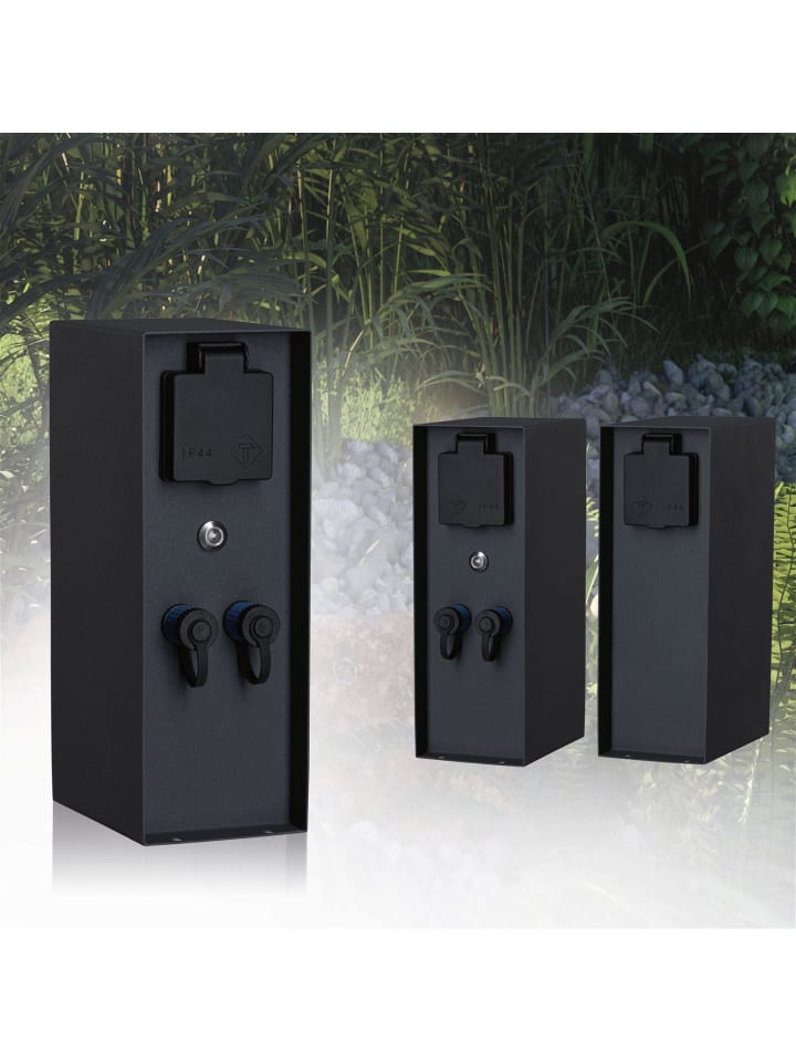Розетка Plug & Shine Rio с датчиком сумерек служит точкой распределения электроэнергии для наружного использования. Благодаря степени защиты от брызг IP44 и заземленным розеткам, она идеально подходит для управления садовым освещением. Встроенный трансформатор позволяет напрямую подключать к розетке систему Plug & Shine с двумя выходами (максимальной мощностью до 75 Вт). Переключение двух выходов Plug & Shine осуществляется с помощью датчика сумерек. Для дополнительных задач в саду доступны две дополнительные розетки 230 В, не зависящие от датчика сумерек.