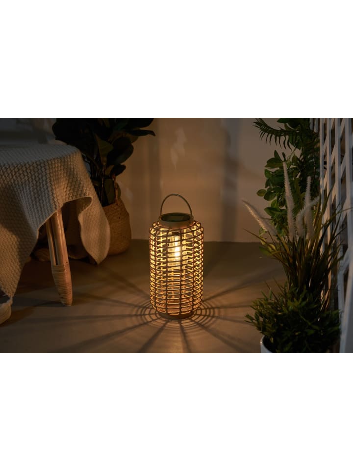 Бежевый солнечный фонарь Sunshine Darling создаст яркий световой акцент долгими летними ночами. Благодаря своему внешнему виду, напоминающему ротанг, фонарь идеально впишется в стиль бохо-натураль, а благодаря сочетанию высококачественного пластика и металла он более долговечен, чем фонари из настоящего ротанга. Солнечный фонарь заряжается от солнечного света в течение дня. С наступлением сумерек свет автоматически включается. Затем он светит до 6 часов в день, создавая уютную атмосферу на балконе или в саду. Солнечные фонари имеют множество преимуществ: они идеально подходят для балконов или садов, не требуют сборки и проводов, а также имеют сменную батарею. Благодаря защите IP44 они защищены от брызг. - Защита от брызг IP44 - Современный теплый светодиодный свет - Автоматическое включение с наступлением сумерек - Идеально подходит для балконов или садов - Солнечный фонарь с батареей - До 6 часов освещения - Не регулируется яркость - Цвет: Бежевый - Материал: Металл | Пластик | Ротанг - Цилиндрический - 1,2 В - Светодиодный - Размеры: В: 300 x Ш: 155 x Г: 155 см
