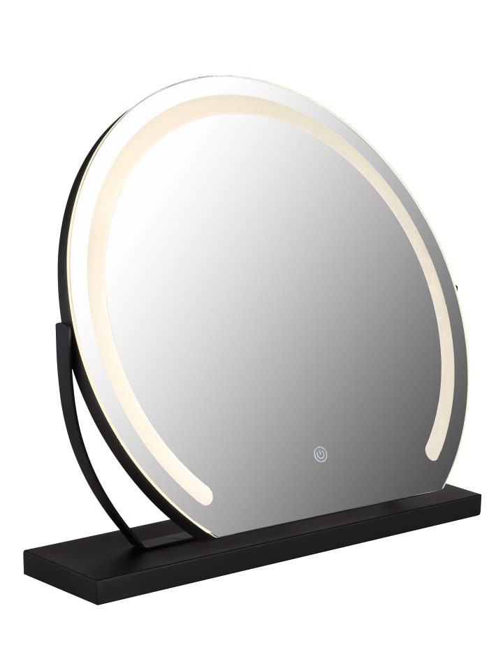 Зеркало, матовый черный металл, черный ПВХ кабель, сенсорное включение/выключение, регулировка яркости, бесступенчатый сенсорный диммер, блокировка цвета, функция памяти, Д x Ш x В: 520 x 120 x 485 мм, длина кабеля 1500 мм, в комплекте светодиод 10 Вт 230 В, источник света 92-828 лм, световой поток 60-532 лм, цветовая температура 2700/4000/6500 K