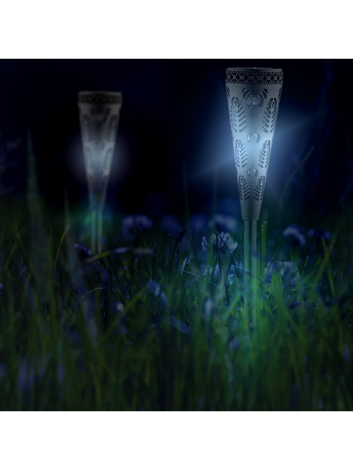 Создайте прекрасную, атмосферную обстановку в саду с помощью этих солнечных светильников в удобном комплекте. Уличные светильники легко вставляются в землю с помощью прилагаемых колышков, что делает их идеальными для использования в качестве освещения дорожек, газонов и клумб. Солнечные садовые светильники заряжаются всего за несколько часов от солнечного света и автоматически загораются с наступлением сумерек. Вырезы в конструкции фонарика создают особые световые эффекты.