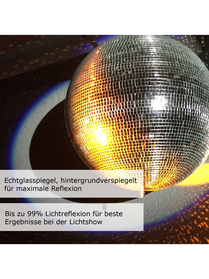 Для достижения наилучшего эффекта зеркальные грани вырезаны размером 7x7 мм и практически бесшовно приклеены. Это отражает как можно больше падающего света и преломляет его на множество тонких лучей. Это создает легендарный диско-эффект, который не утратил своей привлекательности и по сей день.