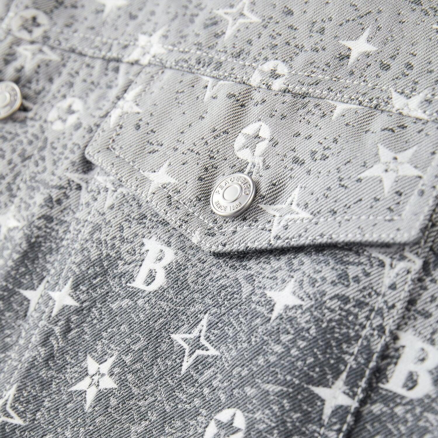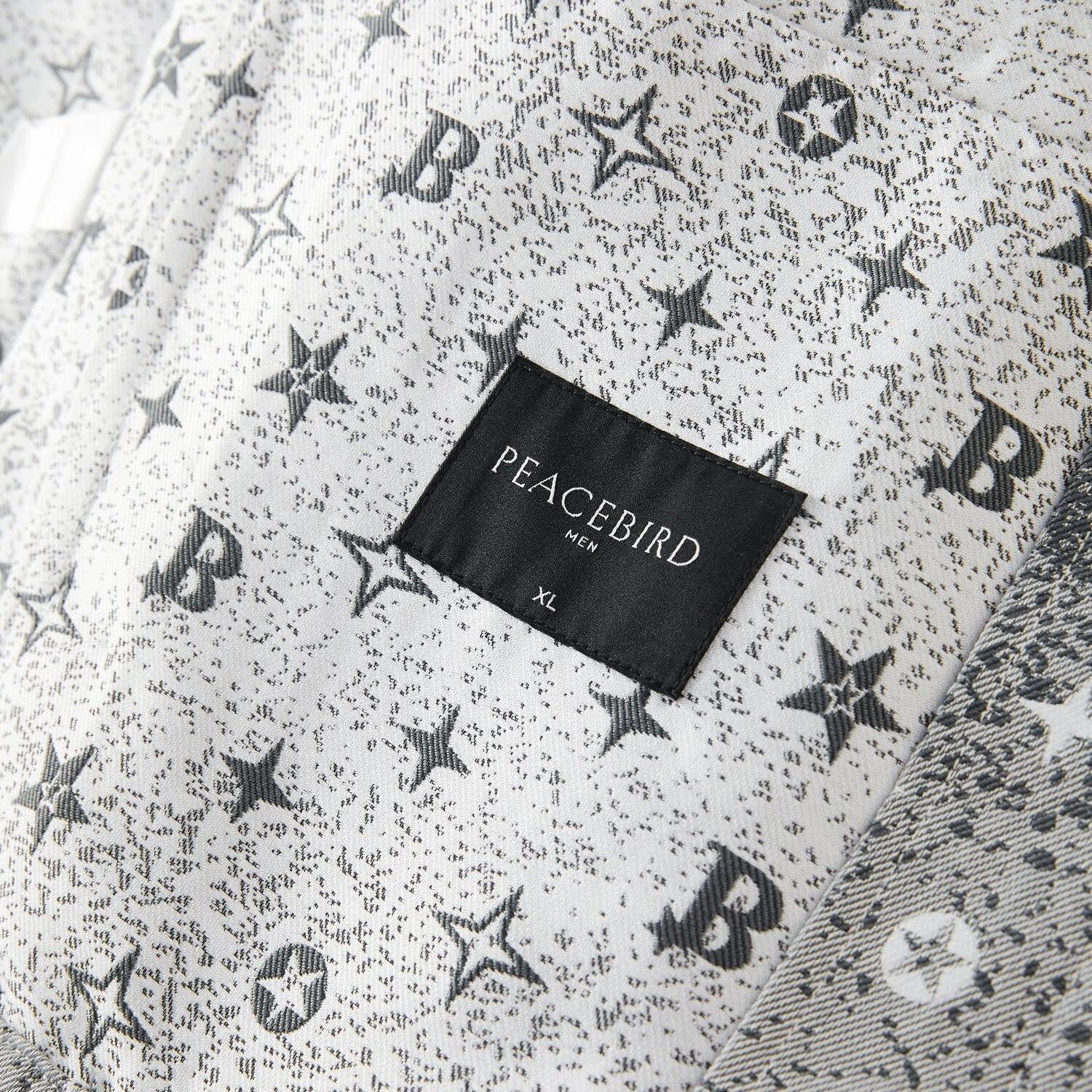 Мужская джинсовая куртка — это элемент одежды от бренда Peacebird, выполненный в светлых тонах с объемным жаккардовым узором. Дизайн модели вдохновлен эстетикой люксовых брендов, но представлен в более доступном сегменте.