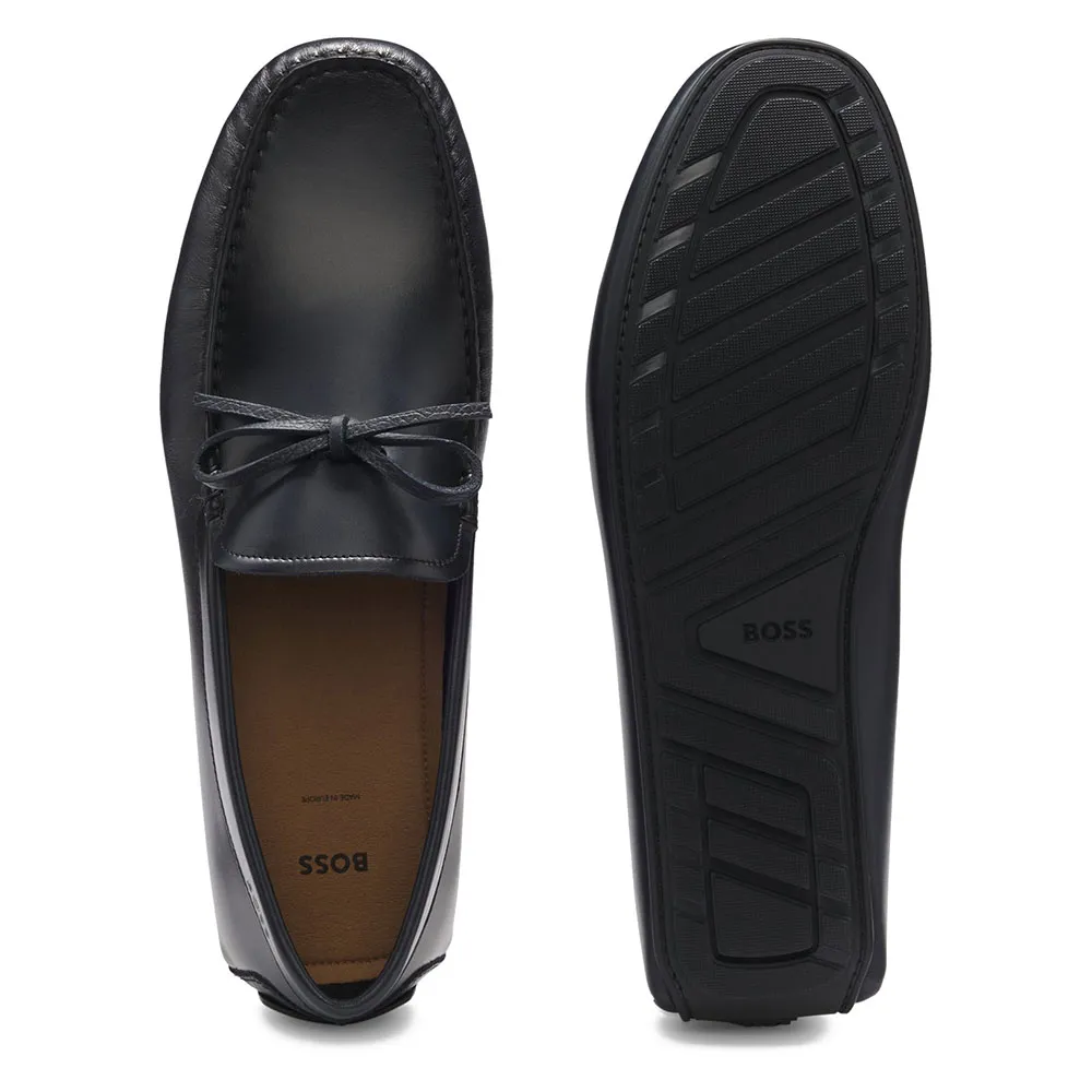 Эти мужские мокасины BOSS с бантом из зернистой кожи добавят изысканности любому образу. Верх из кожи наппа и классическая подошва для вождения. В этом изделии используется не менее 80% высококачественного сырья. Кожа, используемая для изготовления этого изделия, получена от сертифицированных кожевенных заводов.
