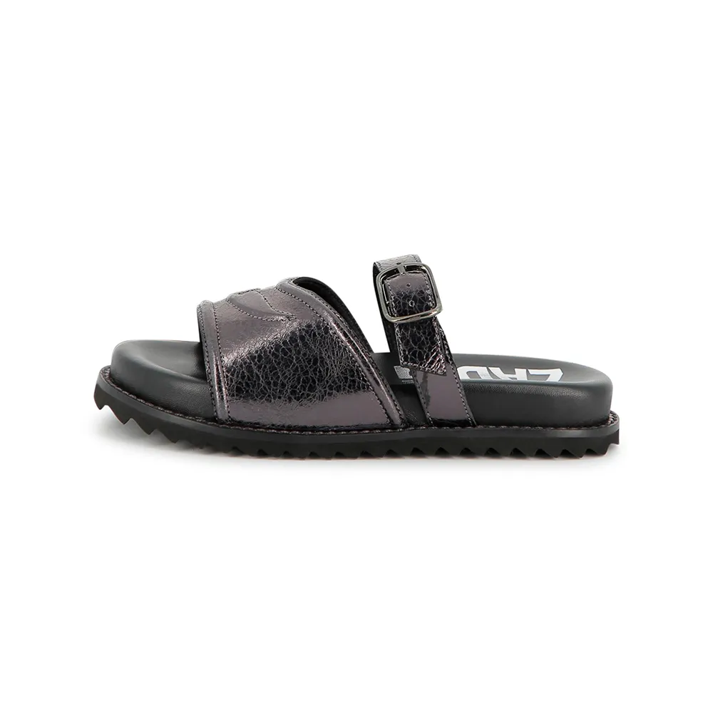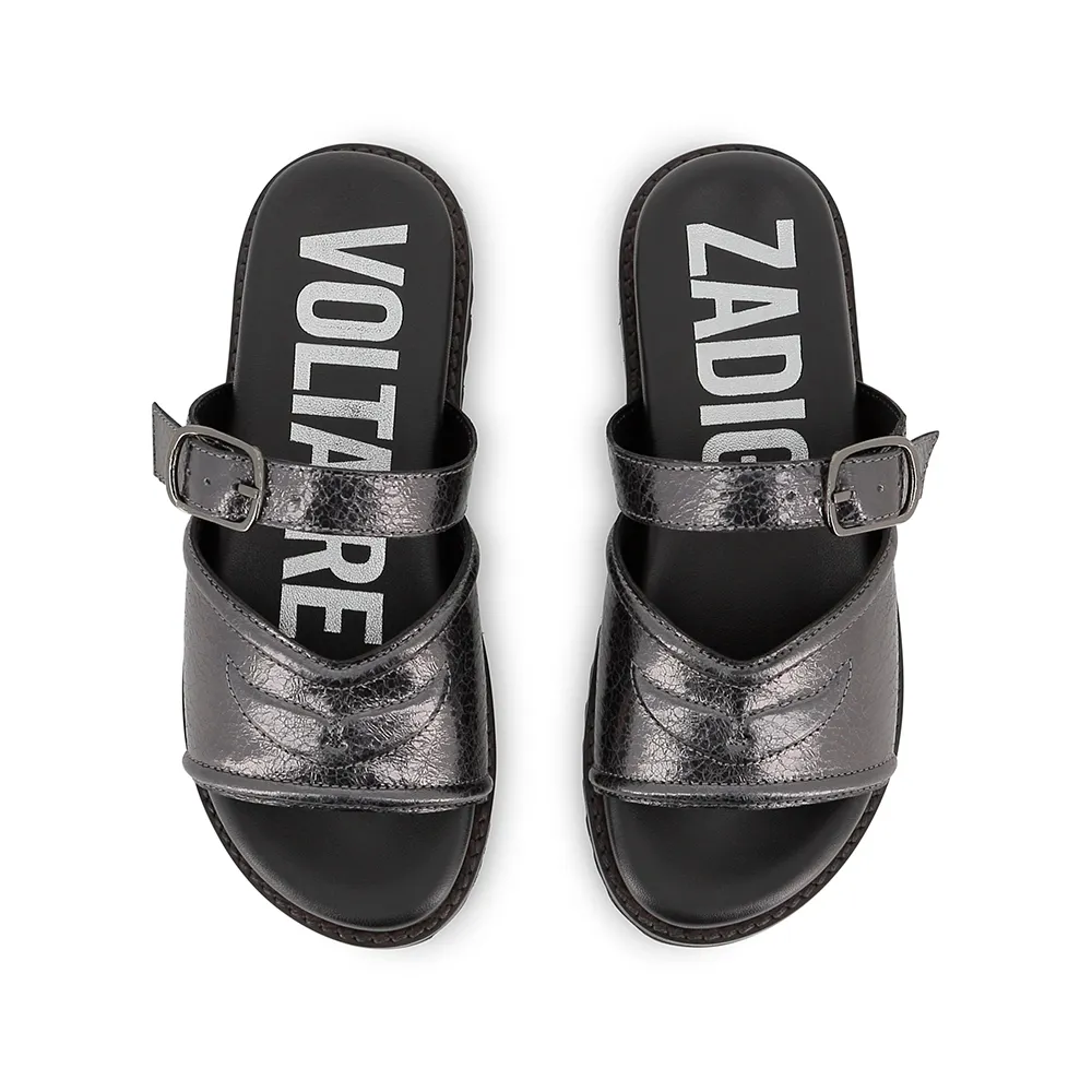 Сандалии из коровьей кожи с металлическим блеском.