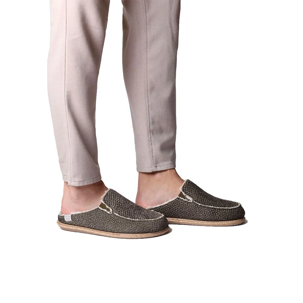 Эти мужские домашние тапочки-сабо изготовлены из полиэстера.