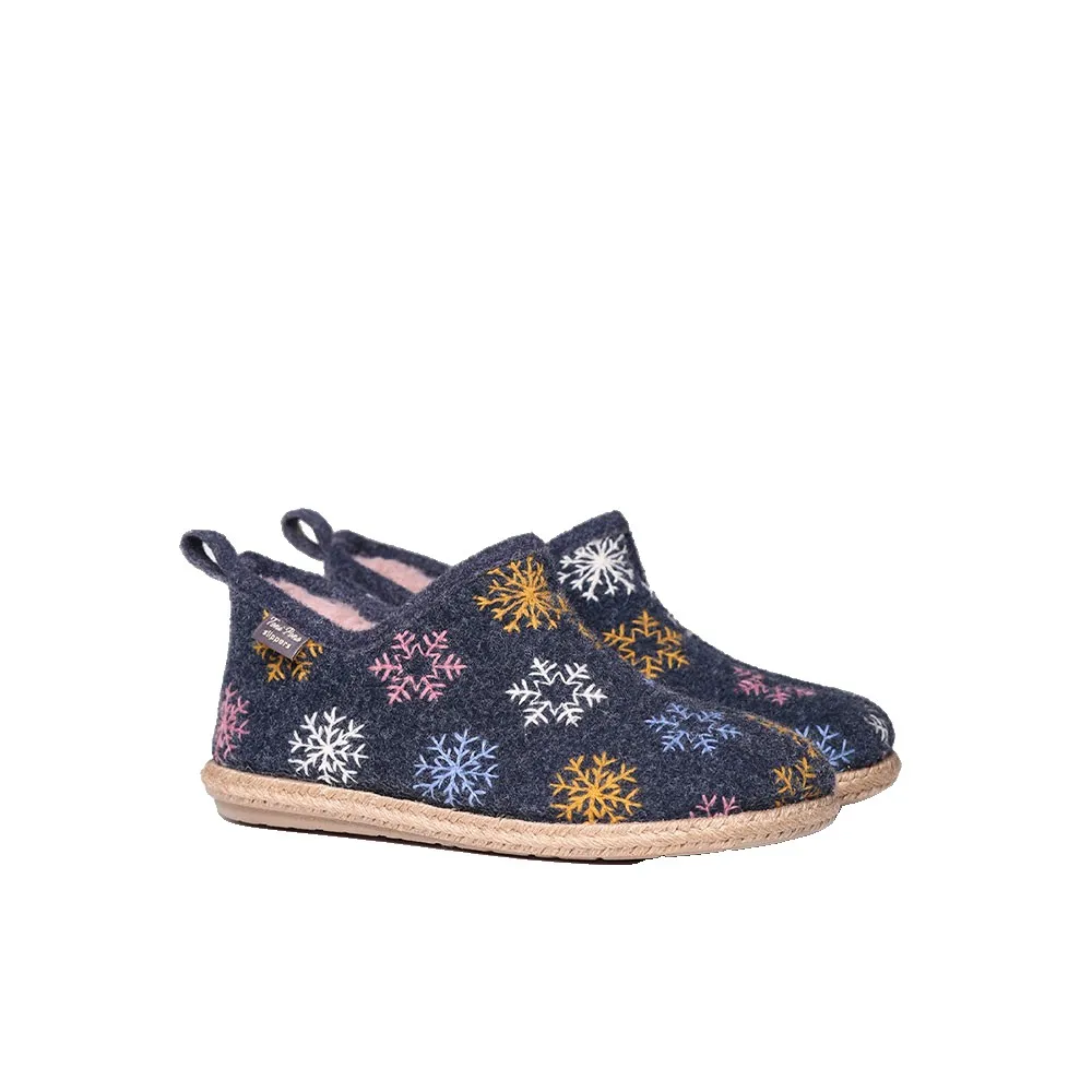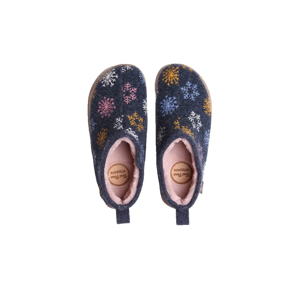 Эта модель выполнена в зимних мотивах, форма ботиночек придает ей современный вид, хотя дизайн по-прежнему напоминает классические домашние тапочки.