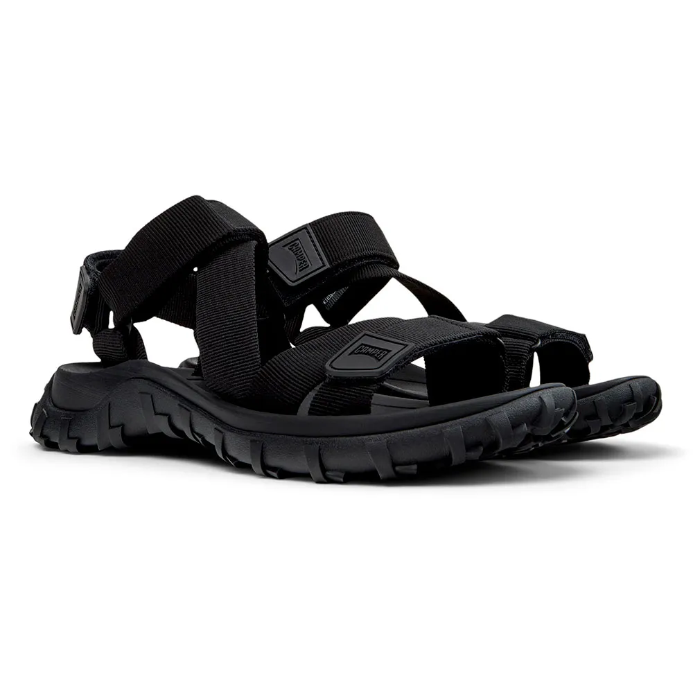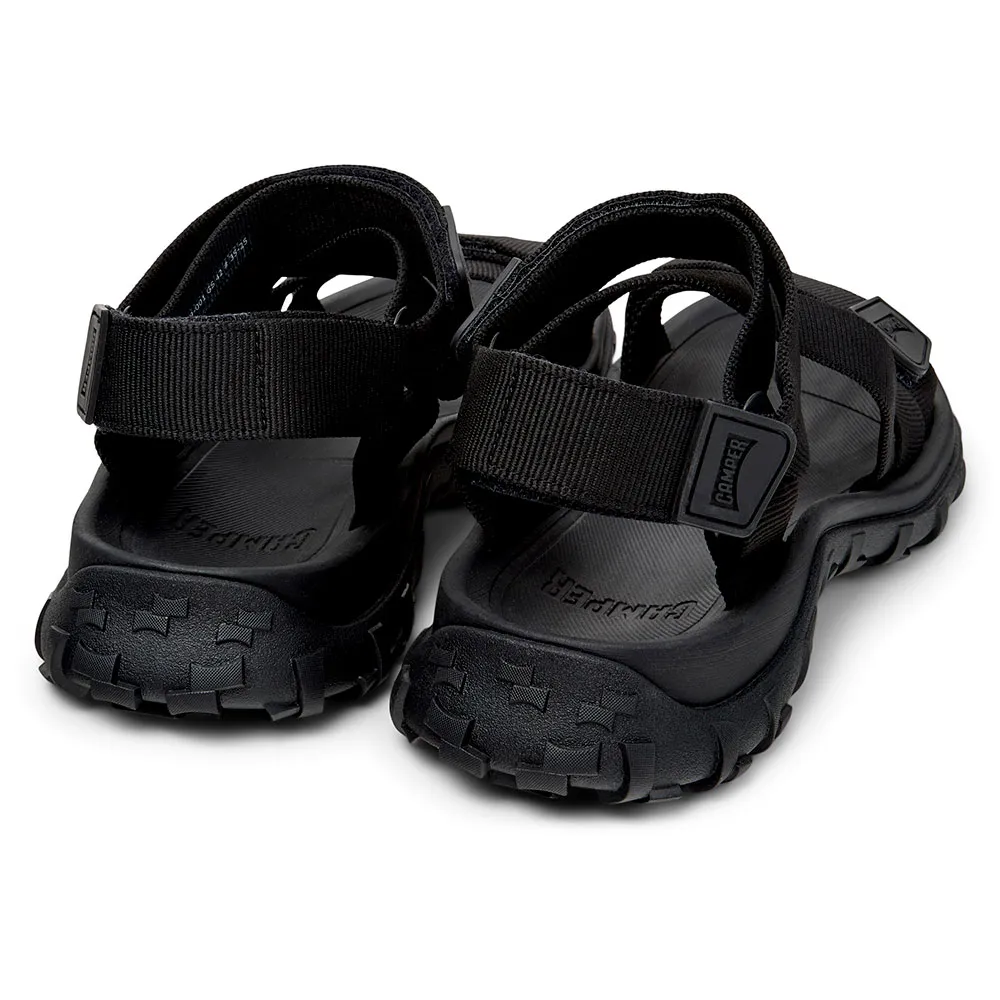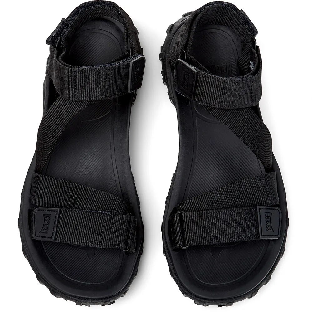 Черные мужские сандалии из переработанного ПЭТ с системой застежек-липучек, промежуточной подошвой из ЭВА и подошвой Vibram.