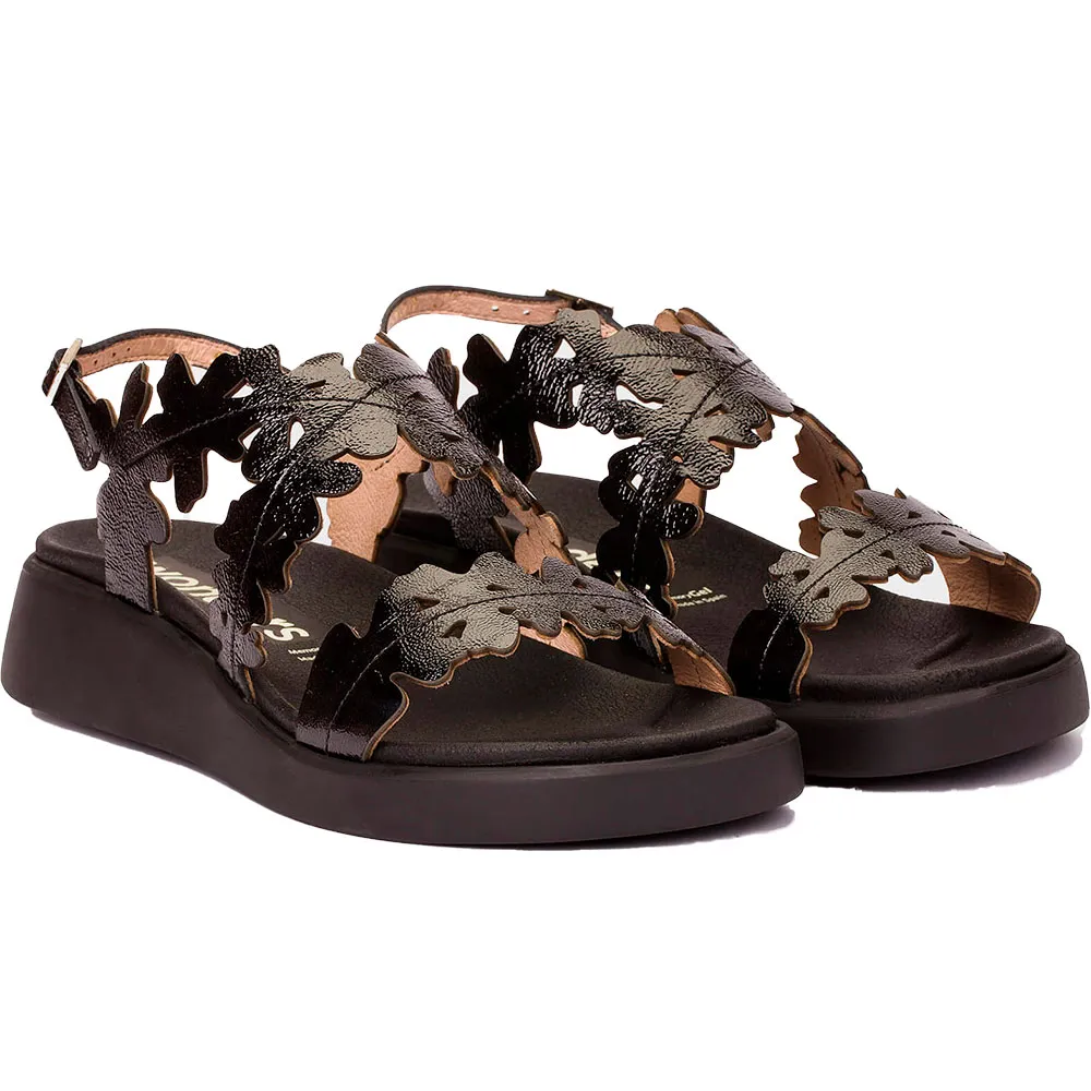 Сандалии MAR 51 на плоской подошве из черной лакированной кожи.