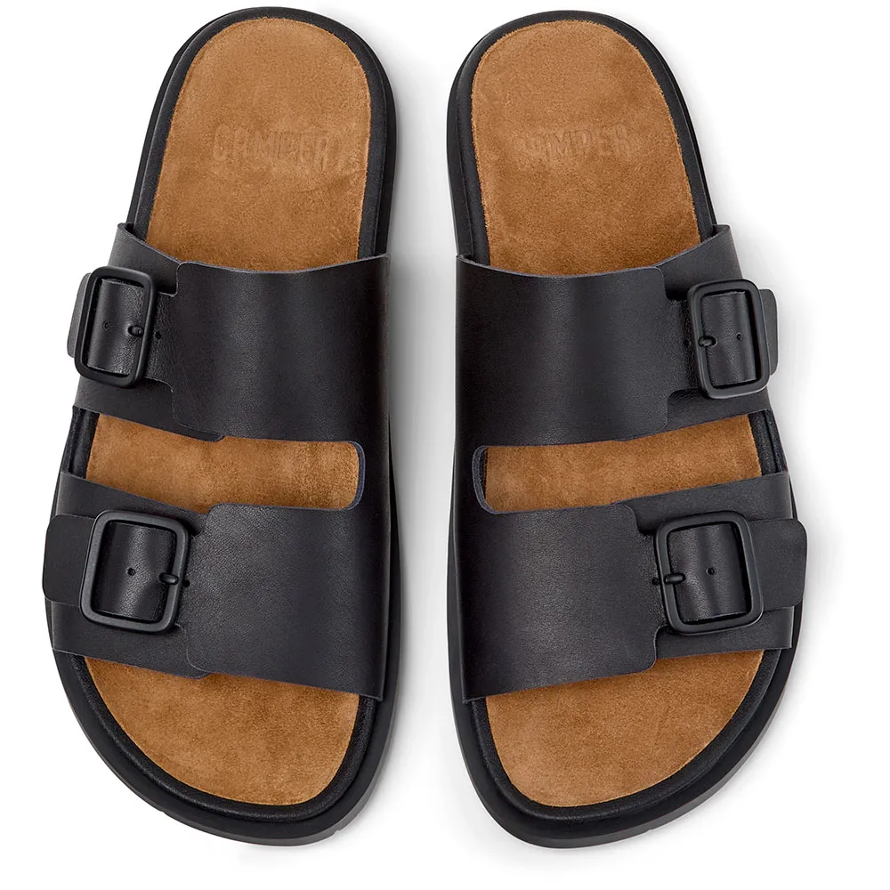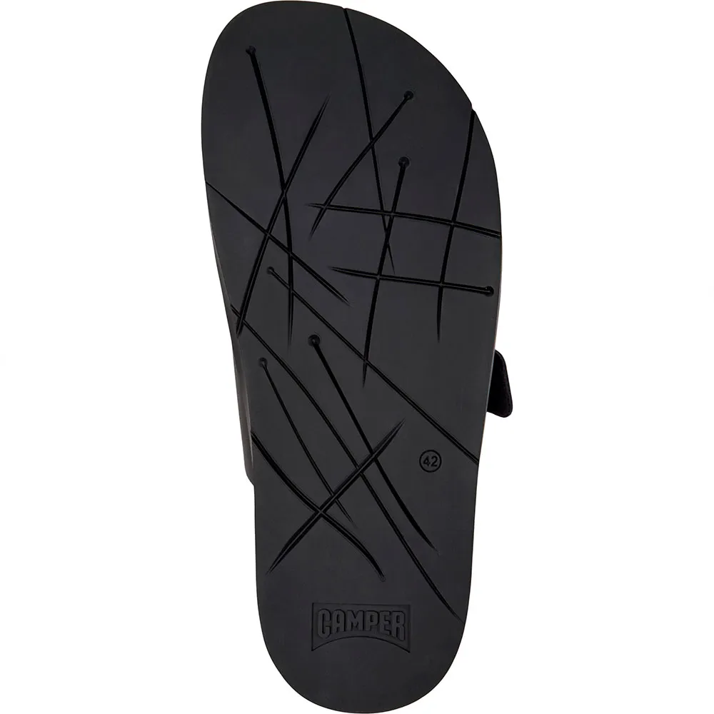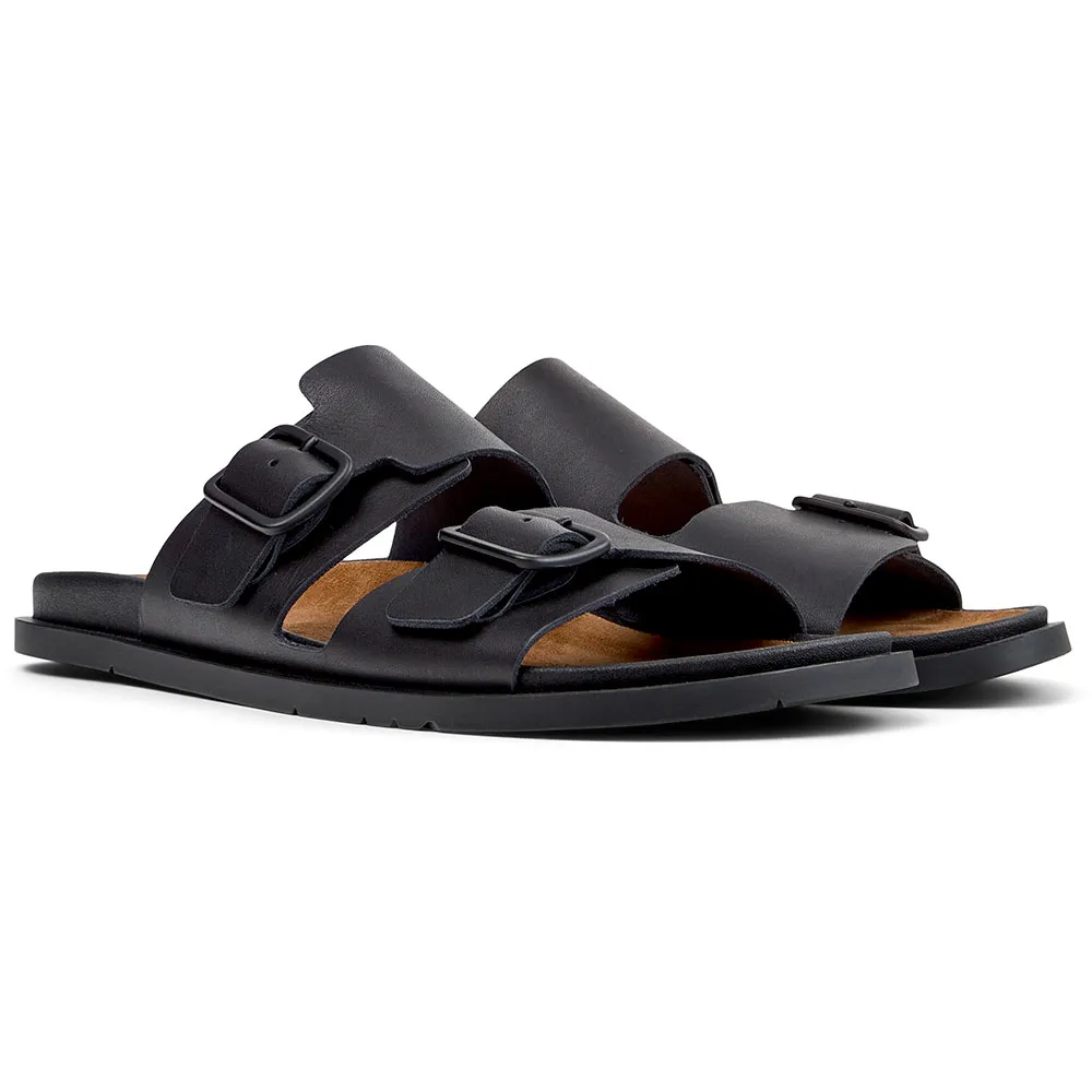Черные мужские сандалии из телячьей кожи с несъемными полиуретановыми стельками и резиновой подошвой.