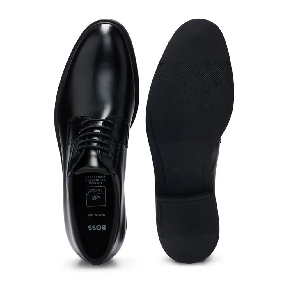 Туфли-дерби на шнуровке из гладкой кожи с резиновой подошвой от BOSS. Не менее 60% кожи, используемой для изготовления этого изделия, получено от сертифицированных кожевенных заводов, применяющих методы с минимальным воздействием на окружающую среду. Приобретая этот продукт, вы поддерживаете ответственное производство кожи через Leather Working Group (LWG). Мы используем только шкуры и кожу, являющиеся побочными продуктами пищевой промышленности.