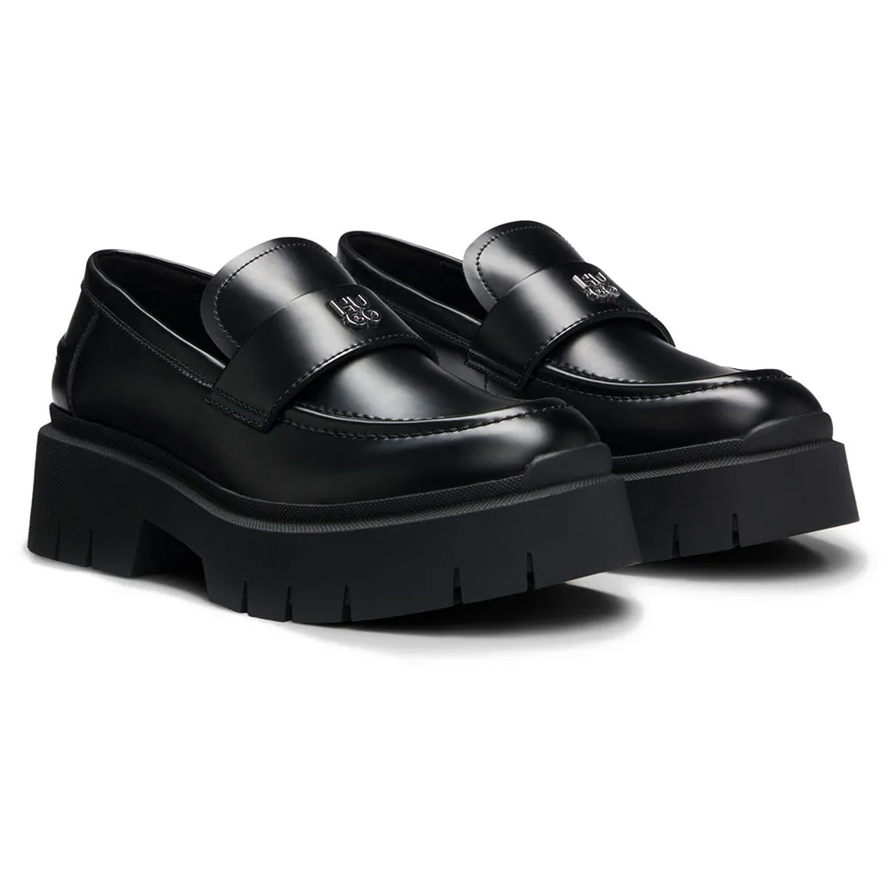 Эти женские лоферы HUGO на массивной резиновой подошве с верхом из гладкой синтетической ткани с покрытием - современный must-have. Отделка в виде многослойного логотипа. Синтетическая ткань с покрытием, иногда называемая искусственной кожей, - это ткань, имитирующая натуральную кожу и/или имеющая матовую, глянцевую, гладкую или текстурированную поверхность.