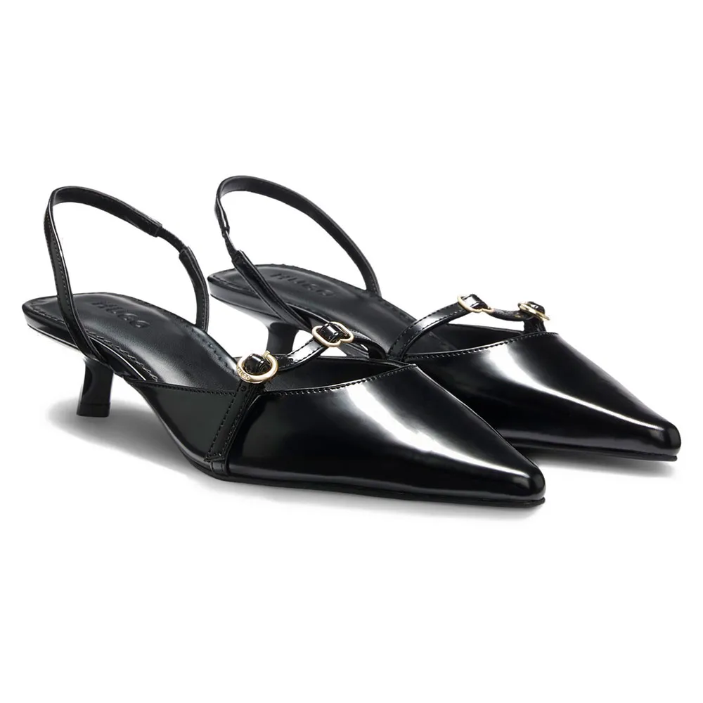 Дополните любой образ с помощью этих женских мюлей HUGO с ремешком на пятке, 4-сантиметровым каблуком и элегантной фурнитурой. Силуэт с острым носком из полированной кожи. В этом изделии используется не менее 80% высококачественного сырья. Кожа, используемая для изготовления этого изделия, получена от сертифицированных кожевенных заводов.