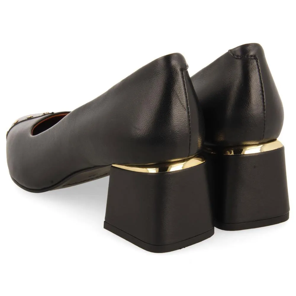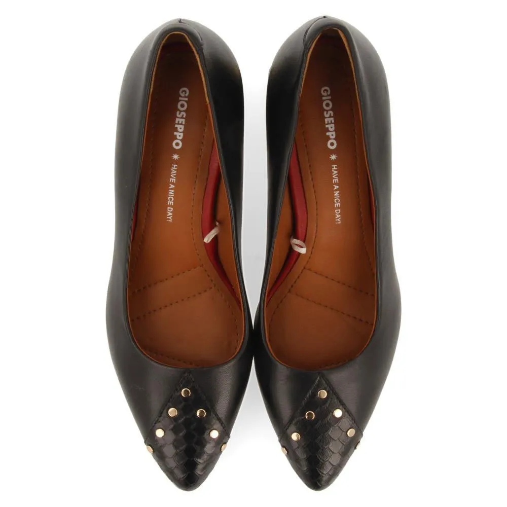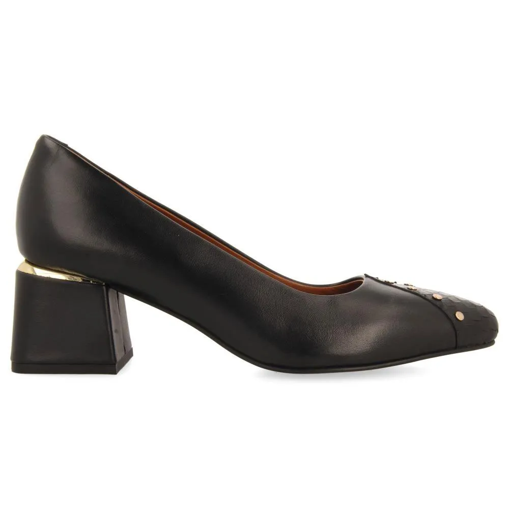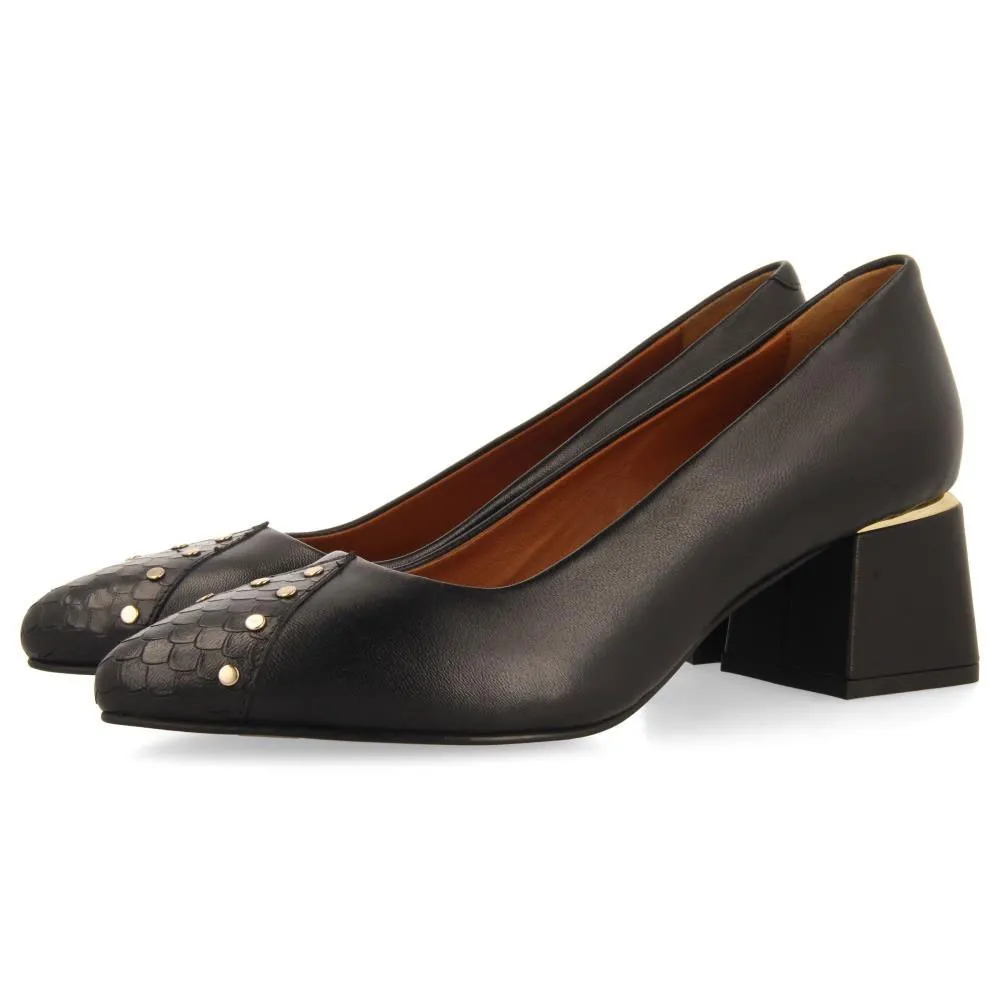 Черные кожаные туфли-лодочки на шпильке с заклепками.