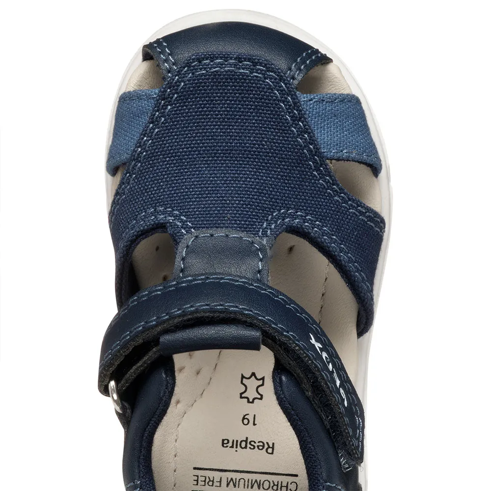 Сандалии Zapito - это закрытые сандалии для первых шагов мальчиков, изготовленные из материала с эффектом кожи и парусины.